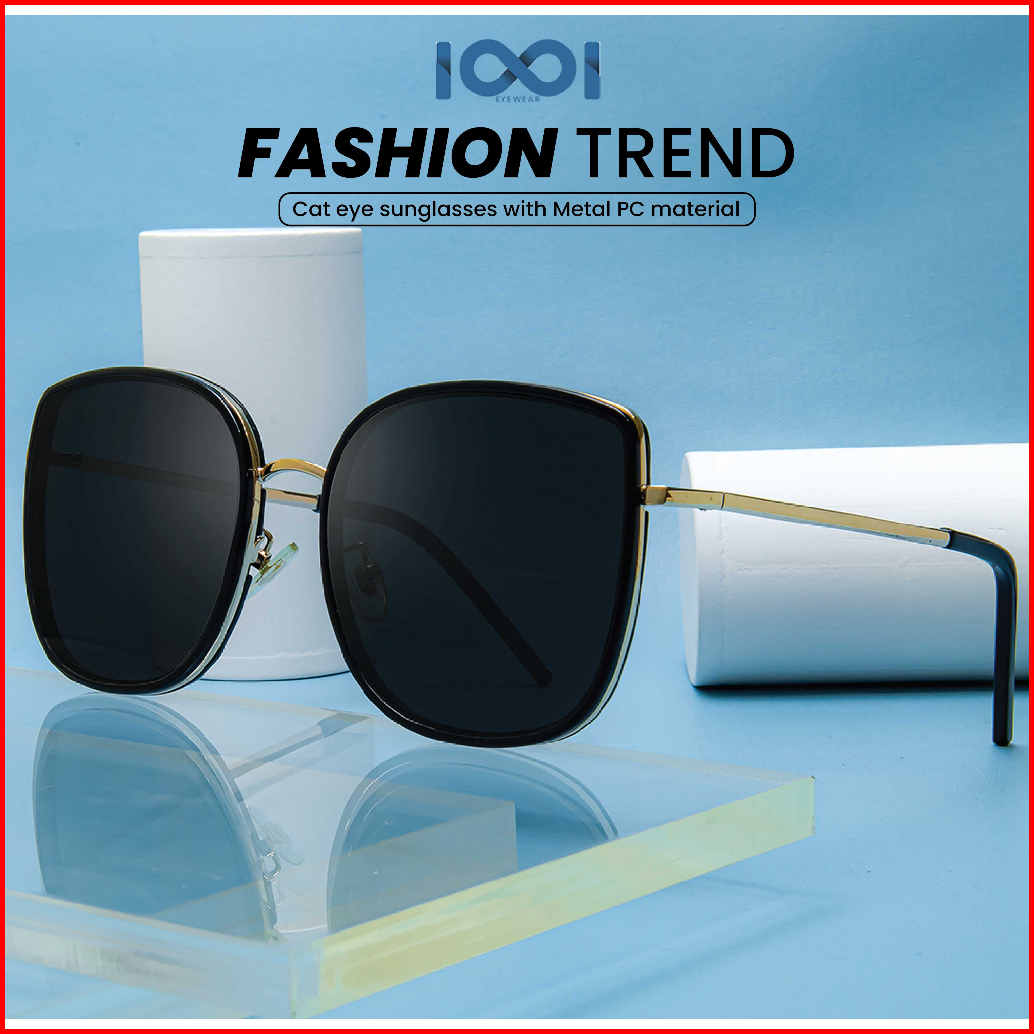 Iooi Eyewear - Kacamata Hitam Metal Pc Sunglasses Cat Eye Anti Uv Fashion Retro Wanita 962