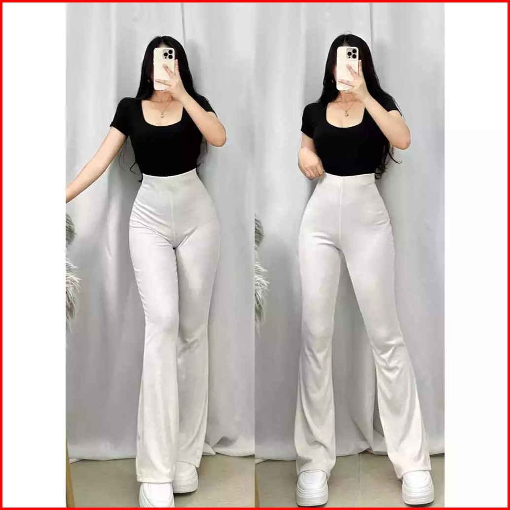 Celana Fit And Flare Pants Cutbray Scuba Pinggang Highwaist Bahan Stretch Melar Elastis Kulot Cutbray Scuba