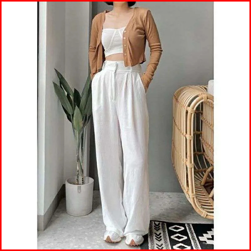 Celana Kulot Wanita Crinkle Premium Loose Pants Kulot Highwaist Crinkle Airflow Trousers Wanita Celana Kantor Wanita For