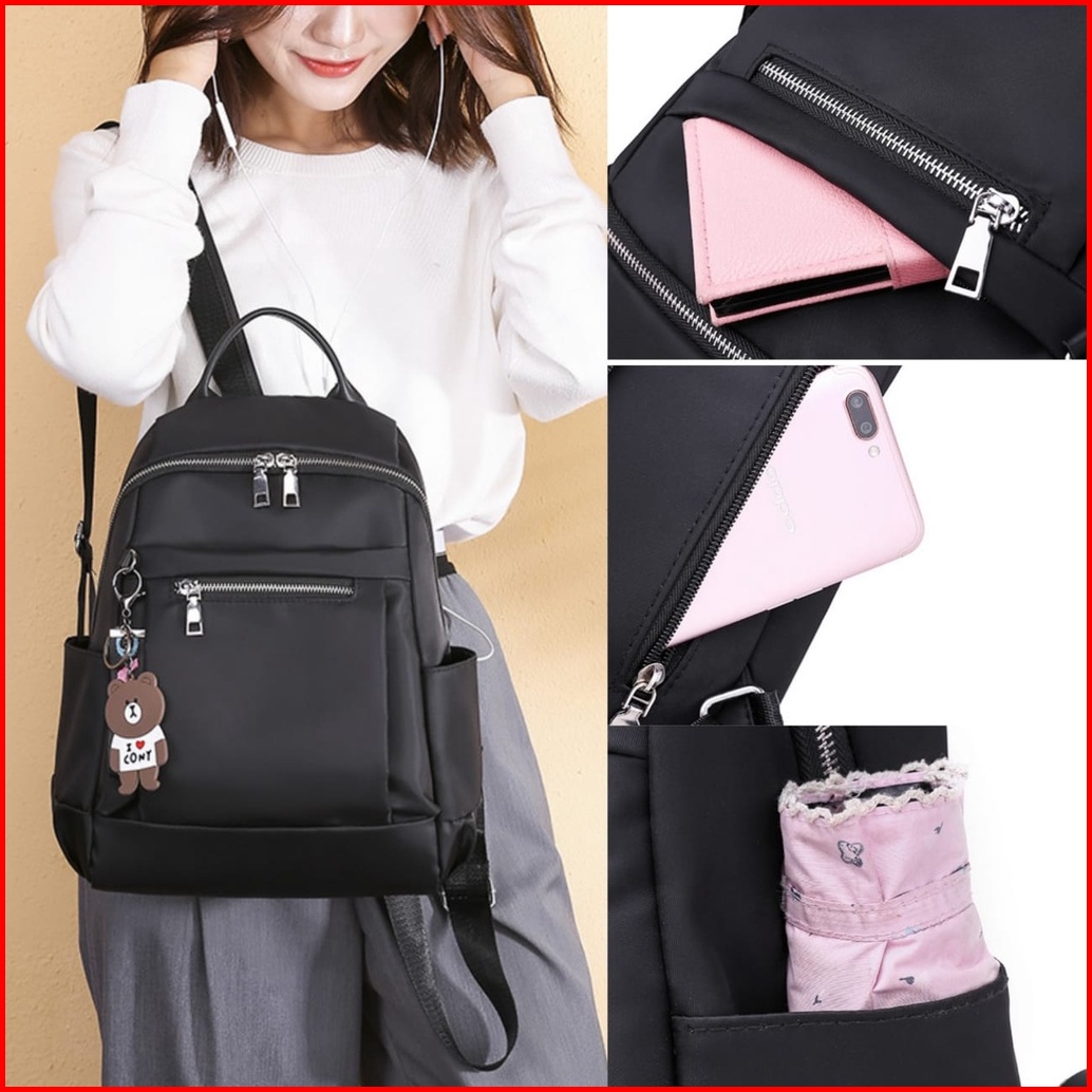 Tas Ransel Wanita Anti Air Hitam Jonase Ta429b5 Backpack Gendong Punggung Sekolah Kuliah Kerja Korea Batam Premium Murah