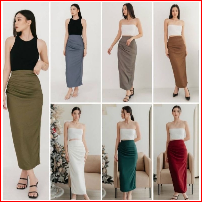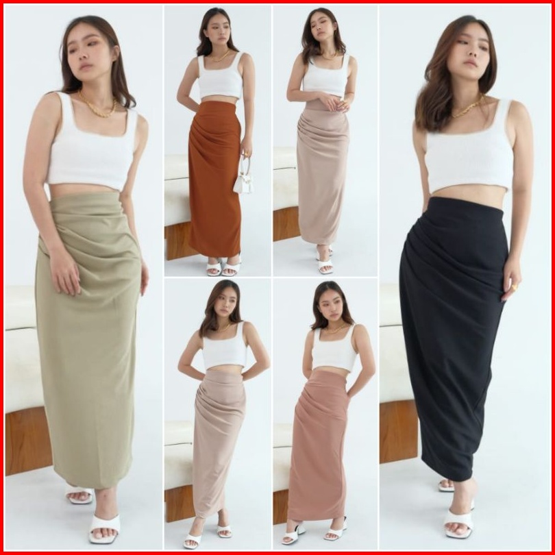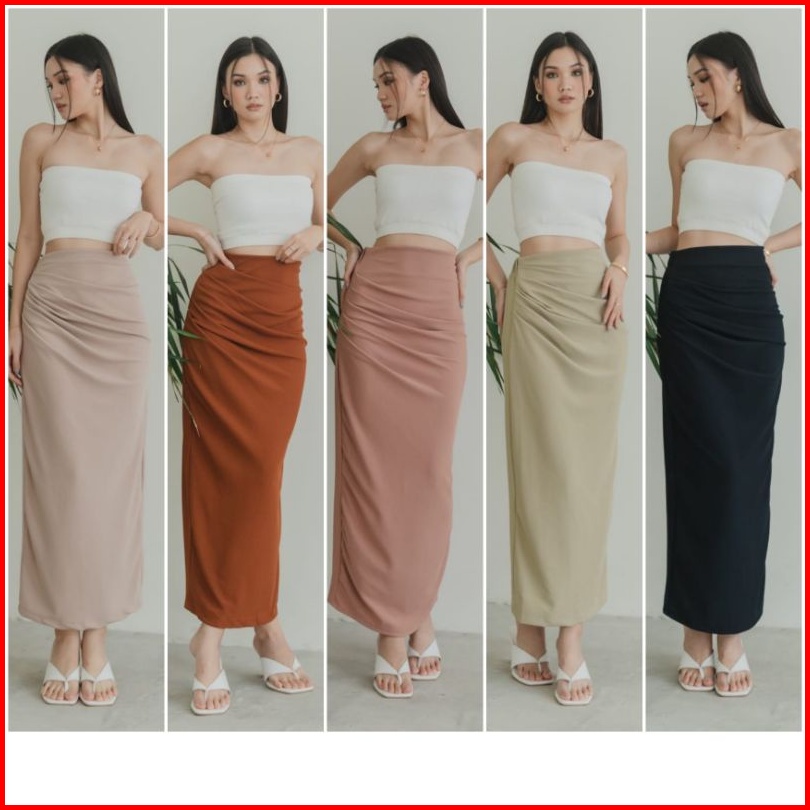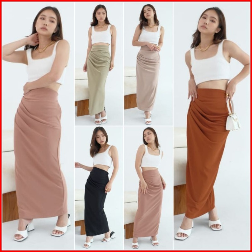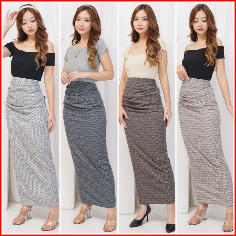 Sale Best Seller Recommended Premium Freya Vintage Long Knit Maxi Skirt Front Pleated Texture Back Slit Rok Panjang Raju