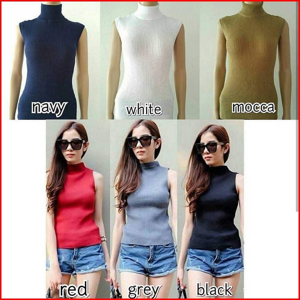 Tangtop Turtleneck Atasan Rajut Tank Top