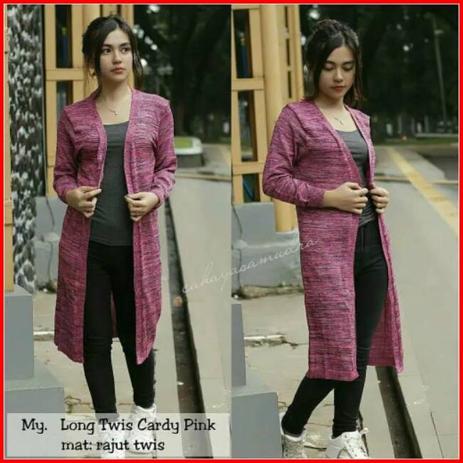Cardigan Rajut Long Twist L Pakaian Rajut Atasan Wanita Murah