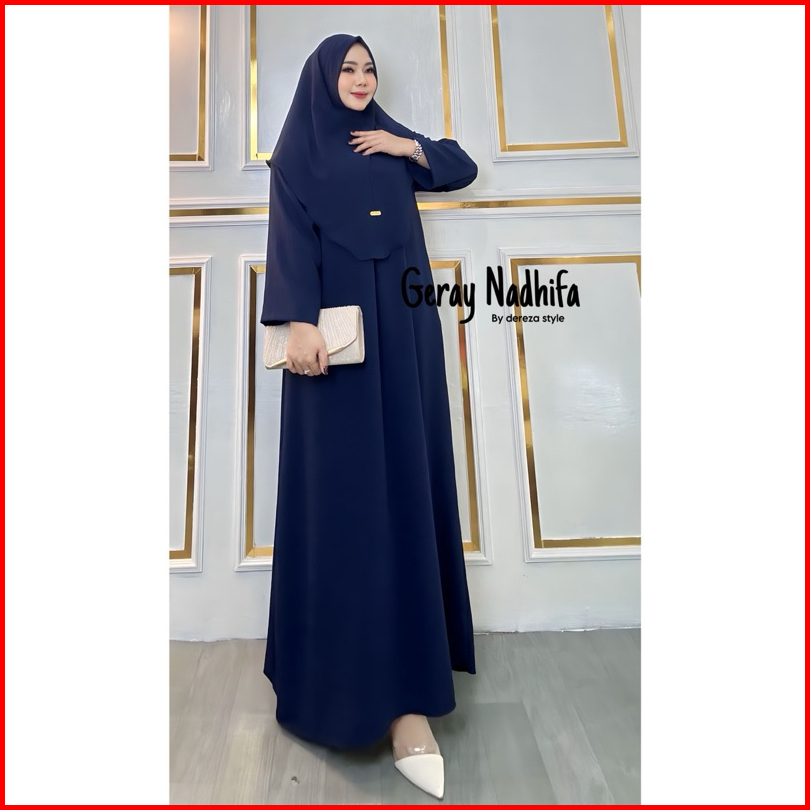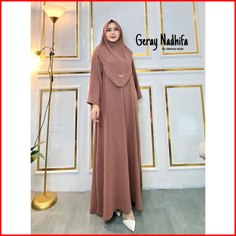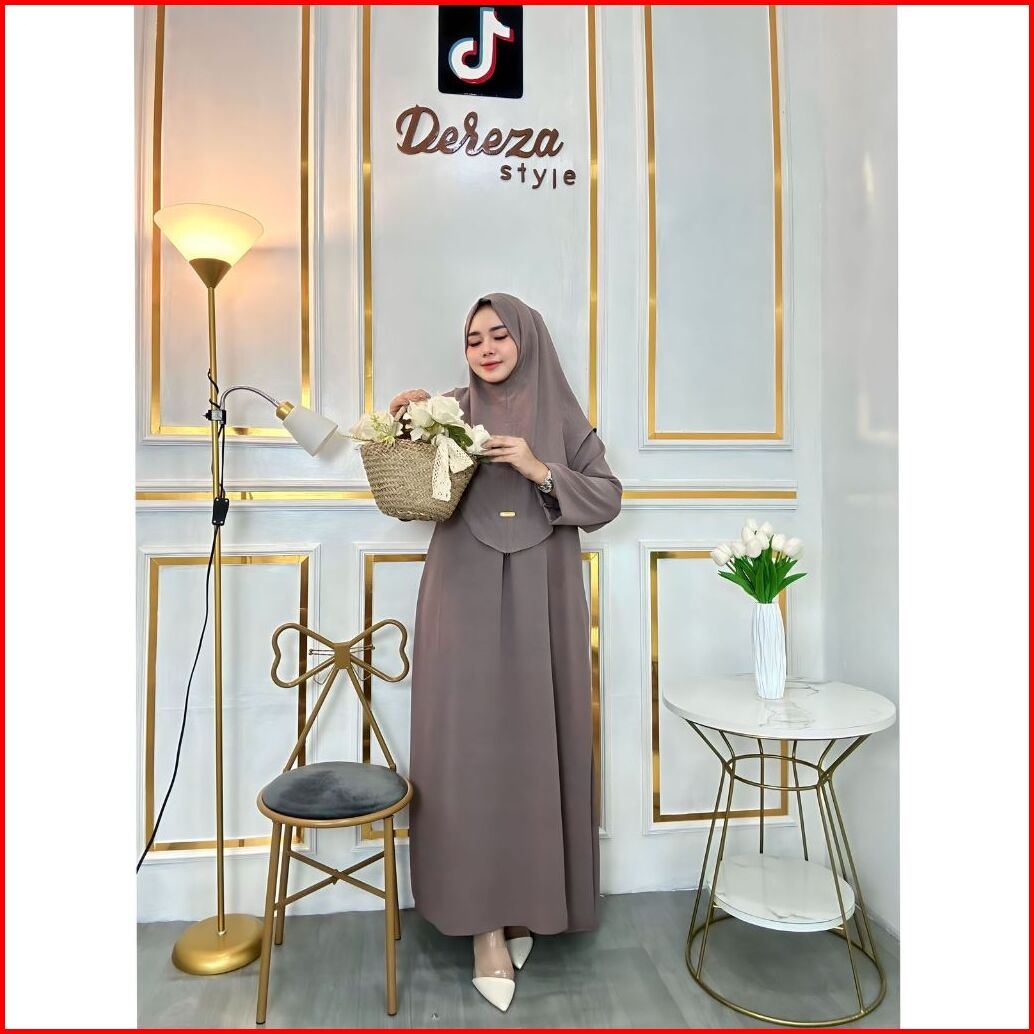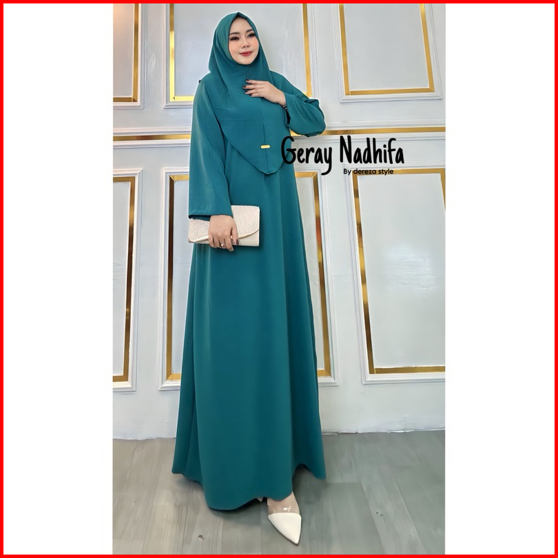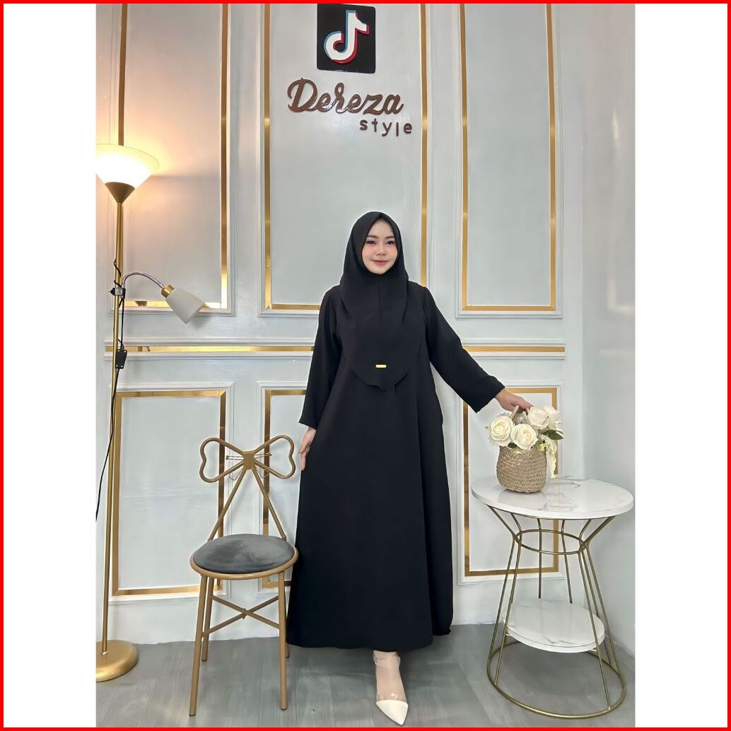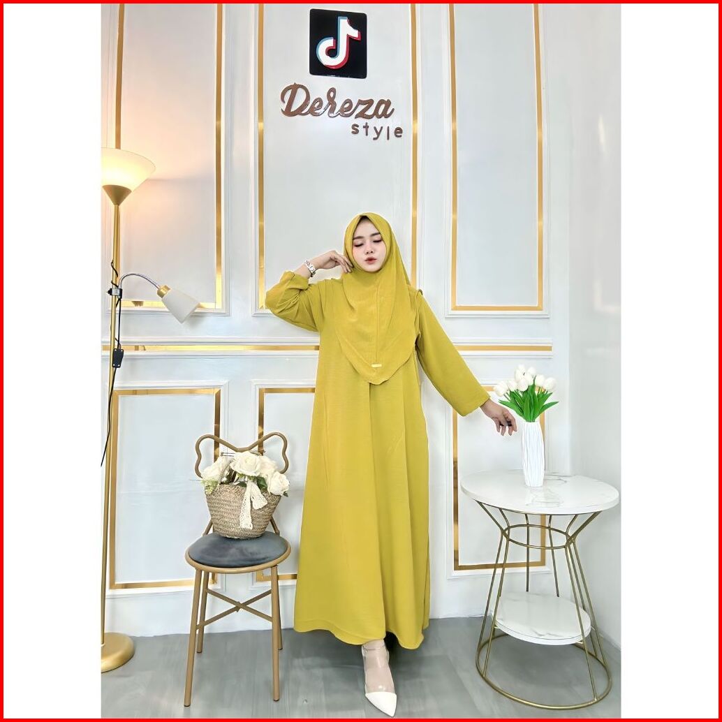 Nur Abaya Set Hijab Bergo Cringkle Airflow By Dereza Style Gamis Set Hijab Polos Muslim Wanita Dress Dewasa