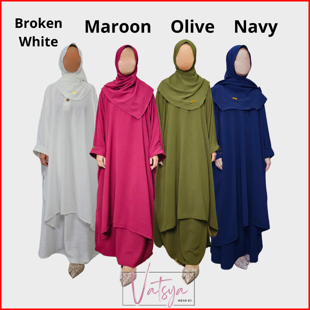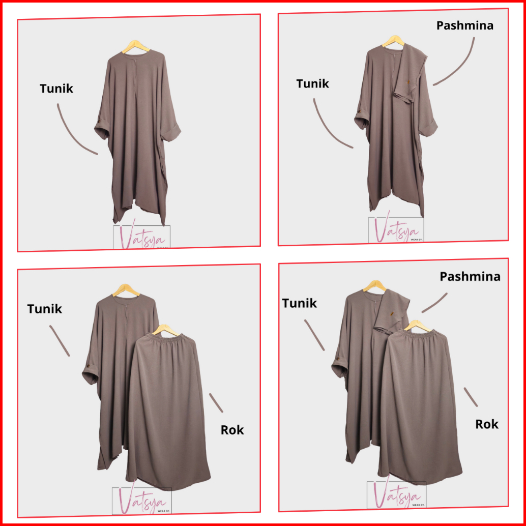 Alula Abaya Tunik Syari - One Set Tunik Jumbo Rok Pashmina Oval