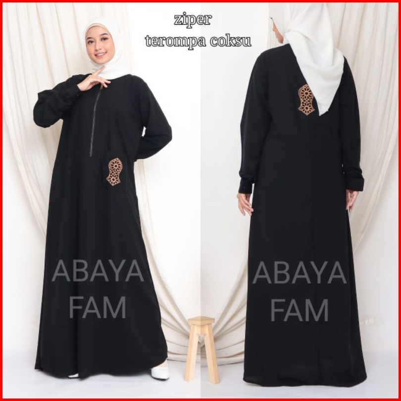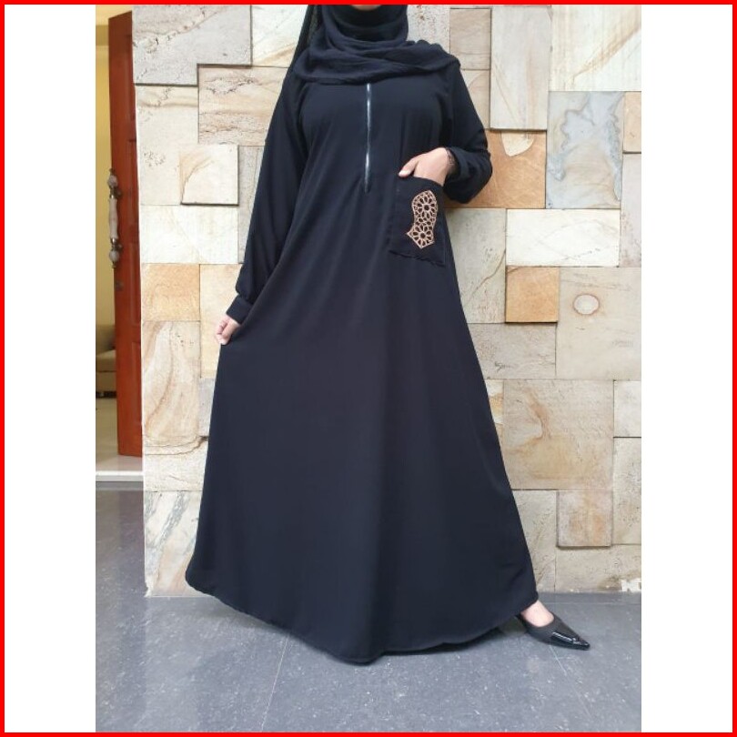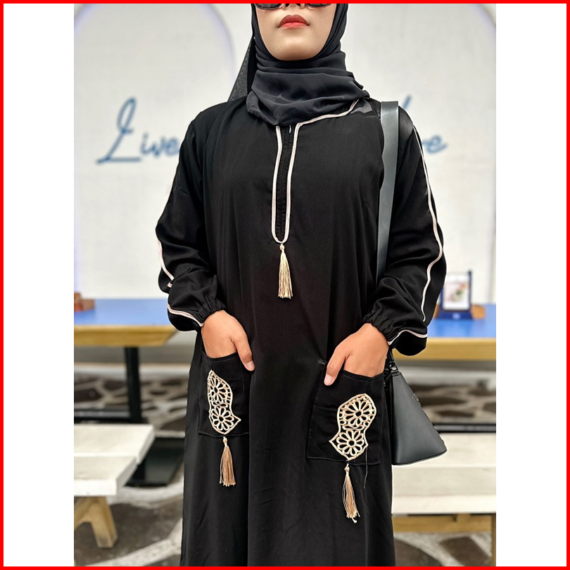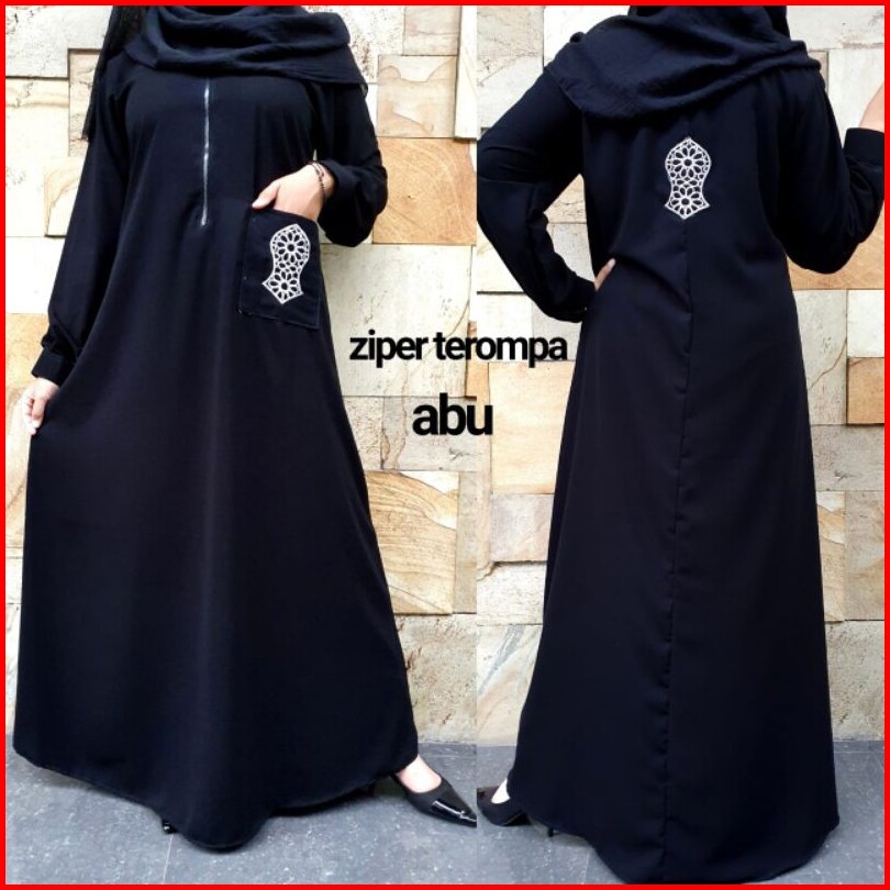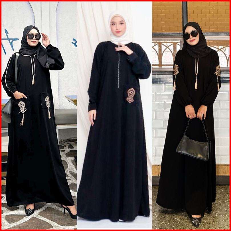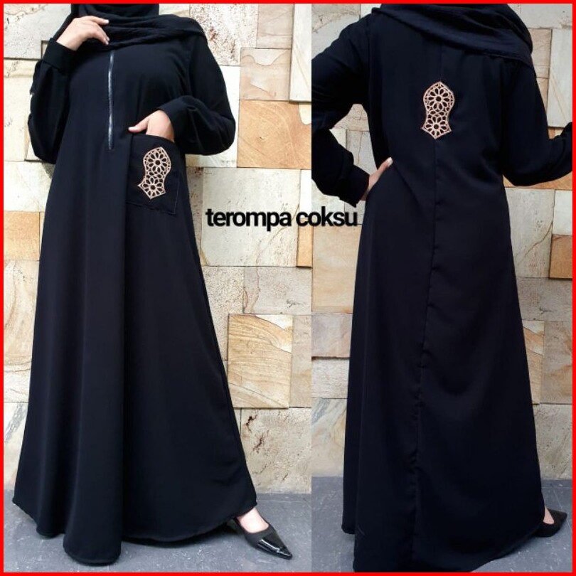 Abaya Hitam Turkey Gamis Maxi Dress Arab Saudi Bordir Turki Dubai Ziper Terompa Saku