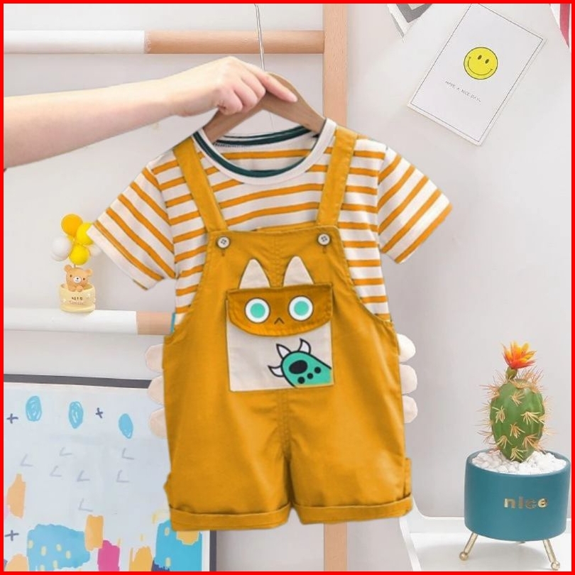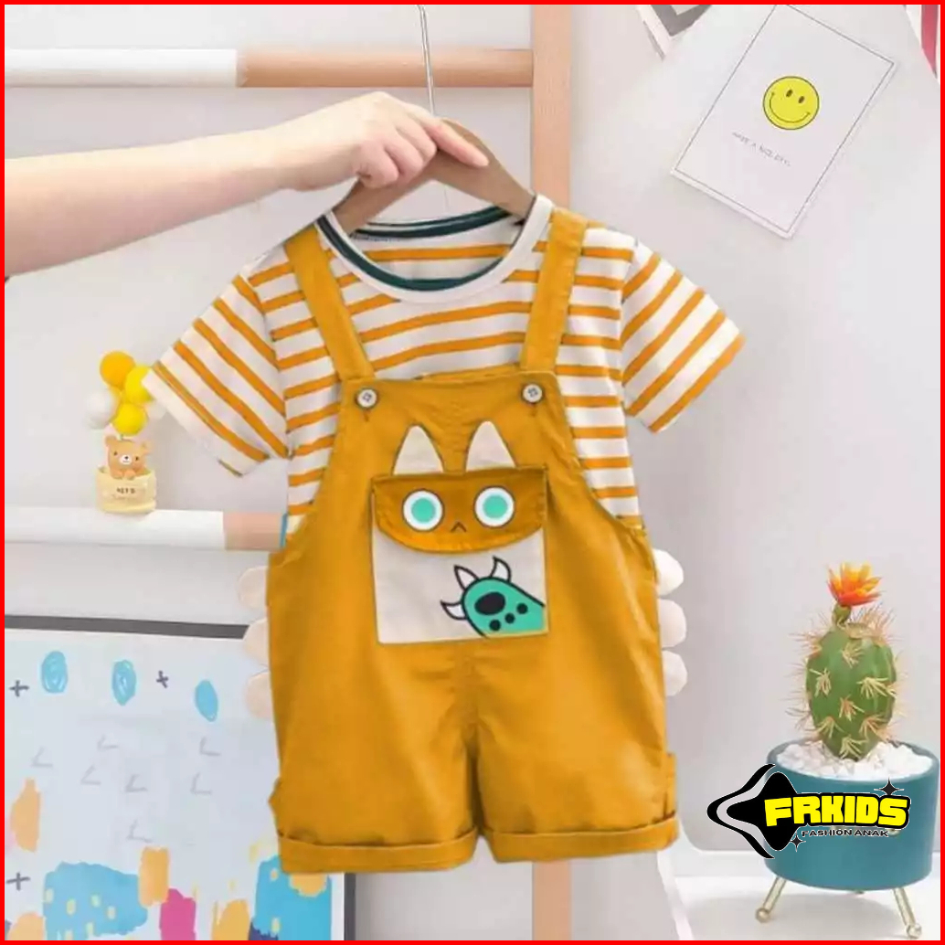 Setelan Bajju Kaos Salur Baju Kodok Anak Overall Gambar Lucu Fashion Anak Laki Laki Anak Perempuan Umur 1-5 Tahun
