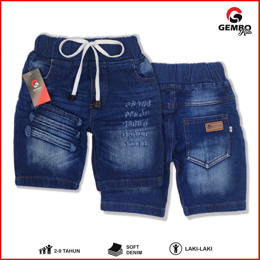Celana Jeans Anak 1-10 Tahun - Celana Anak Laki-laki Jeans Pendek Wisker Strip Biru Tua - Gembo Kids