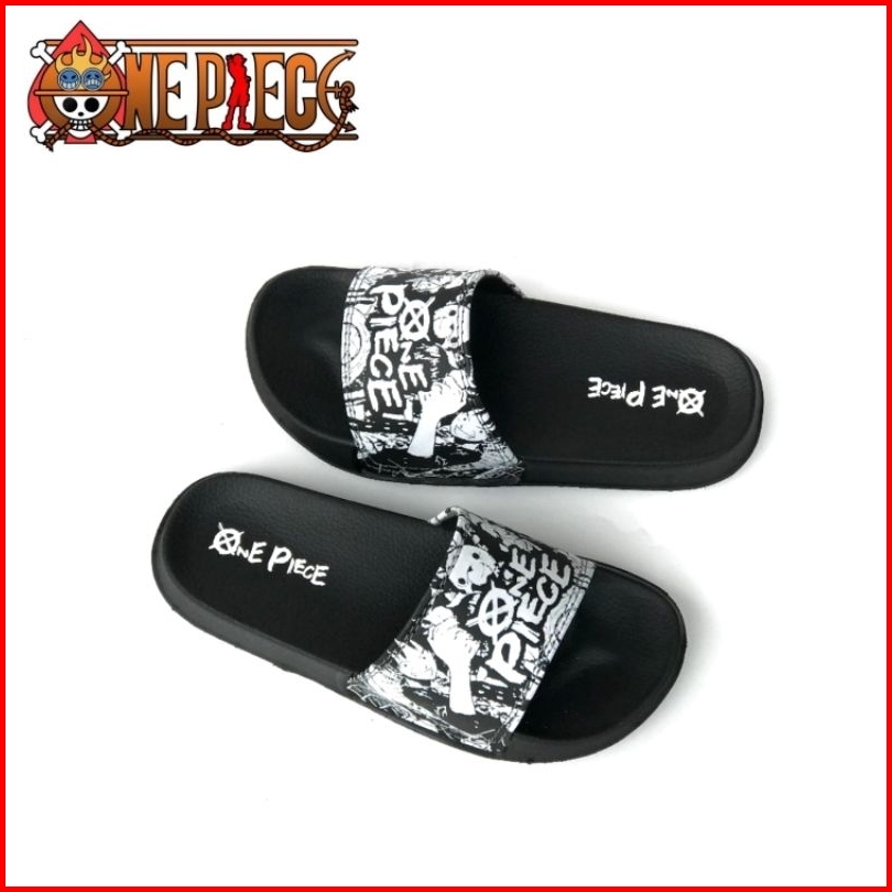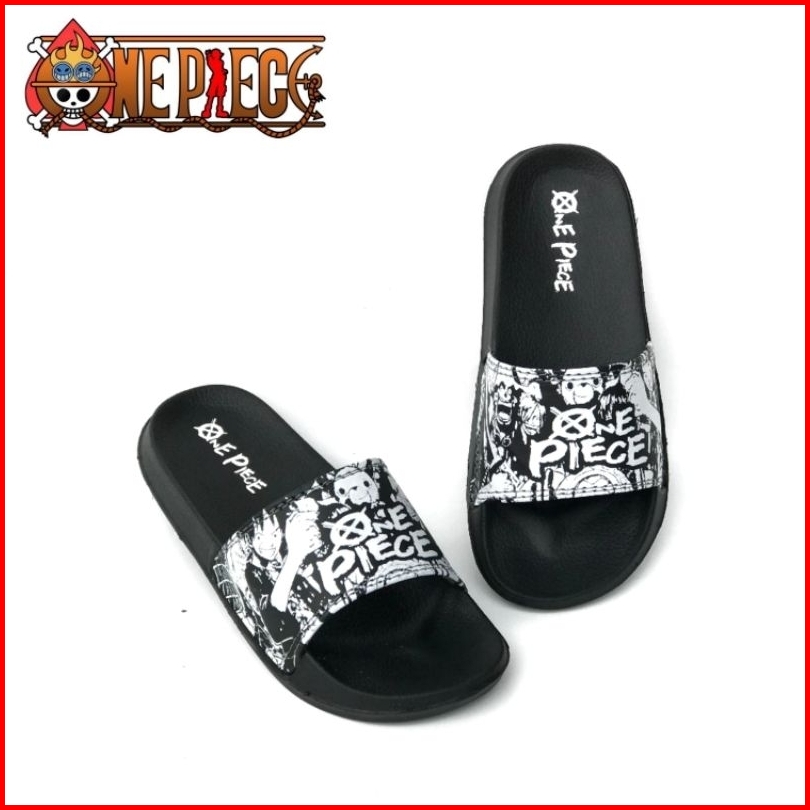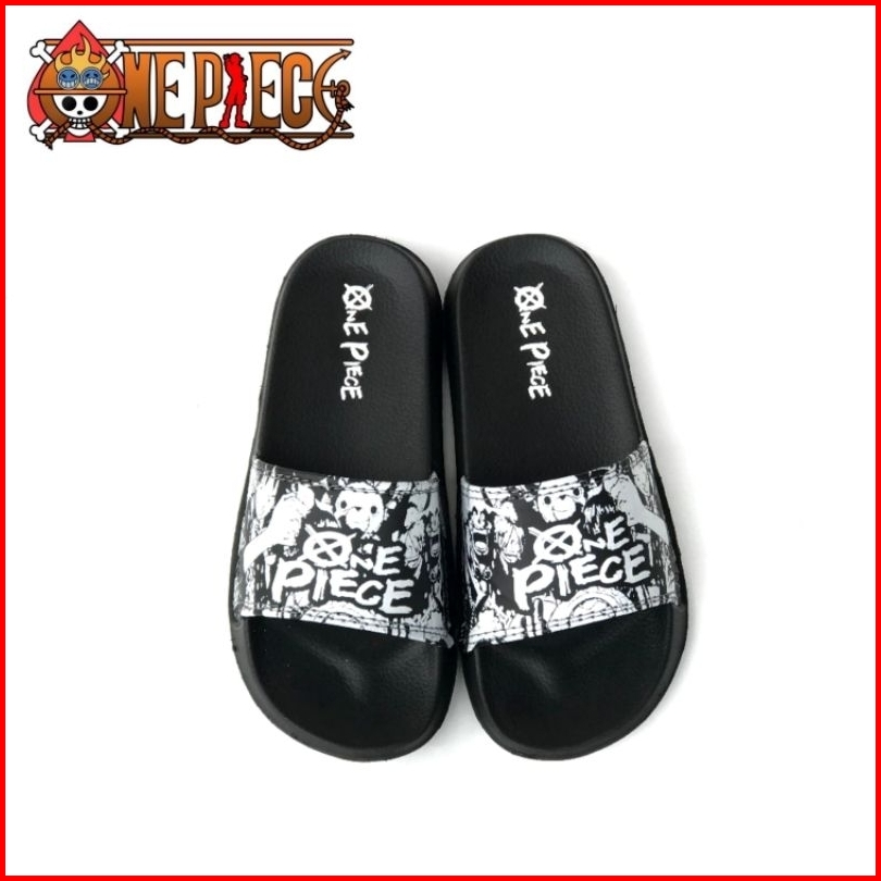 Sandal Anak Motif Onepiece Hitam Putih Bahan Ringan Anti Licin