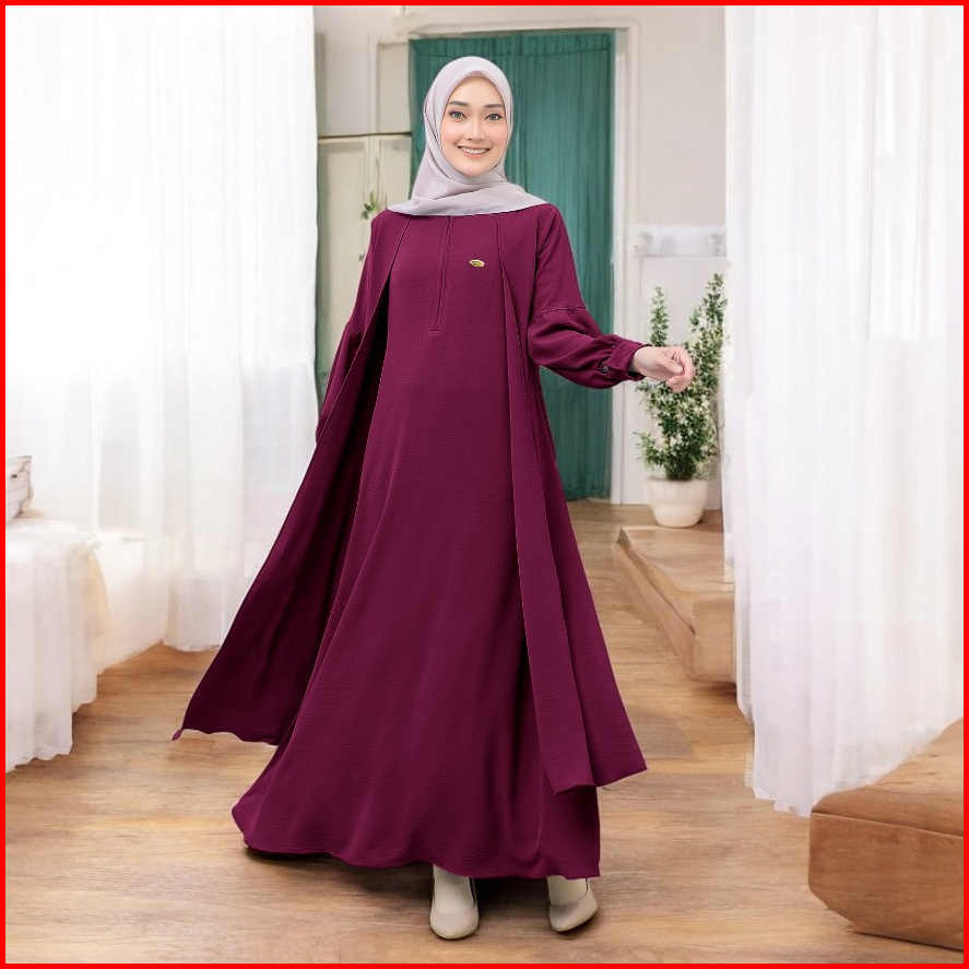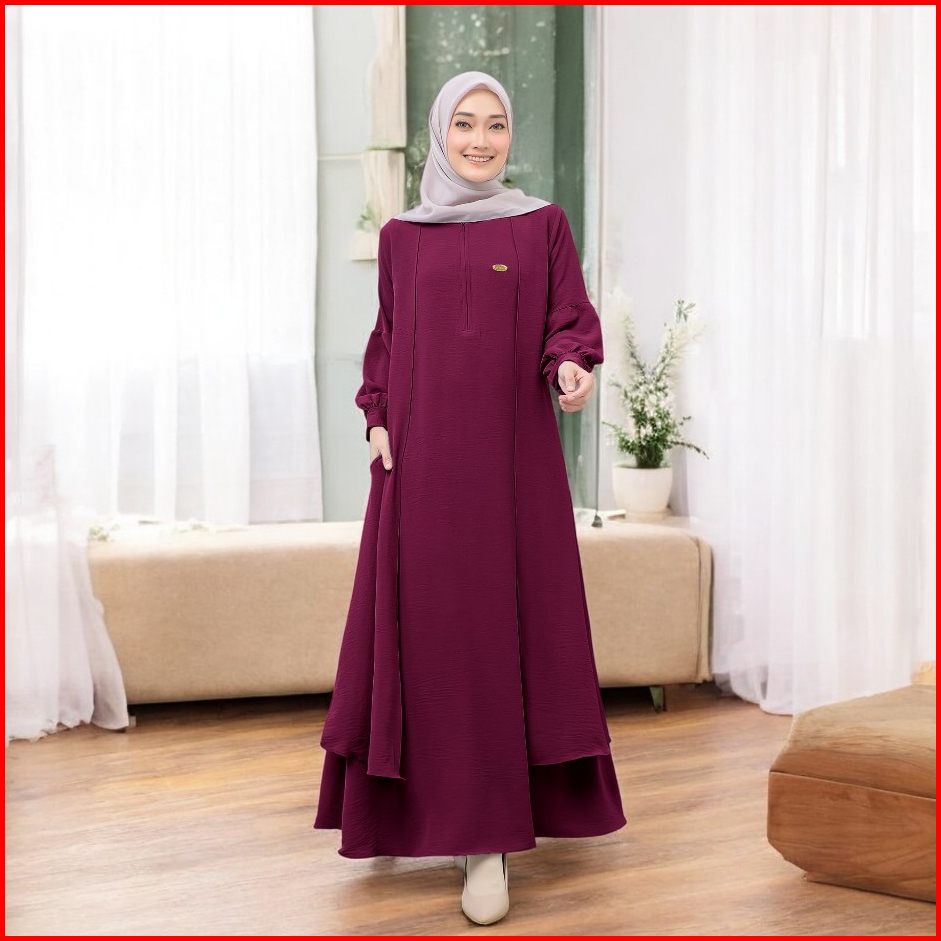 Gamis Polos Variasi Layer Zalenka Dress Size S M L Xl Bahan Tifany Twill Baju Daily Wear Ootd Casual