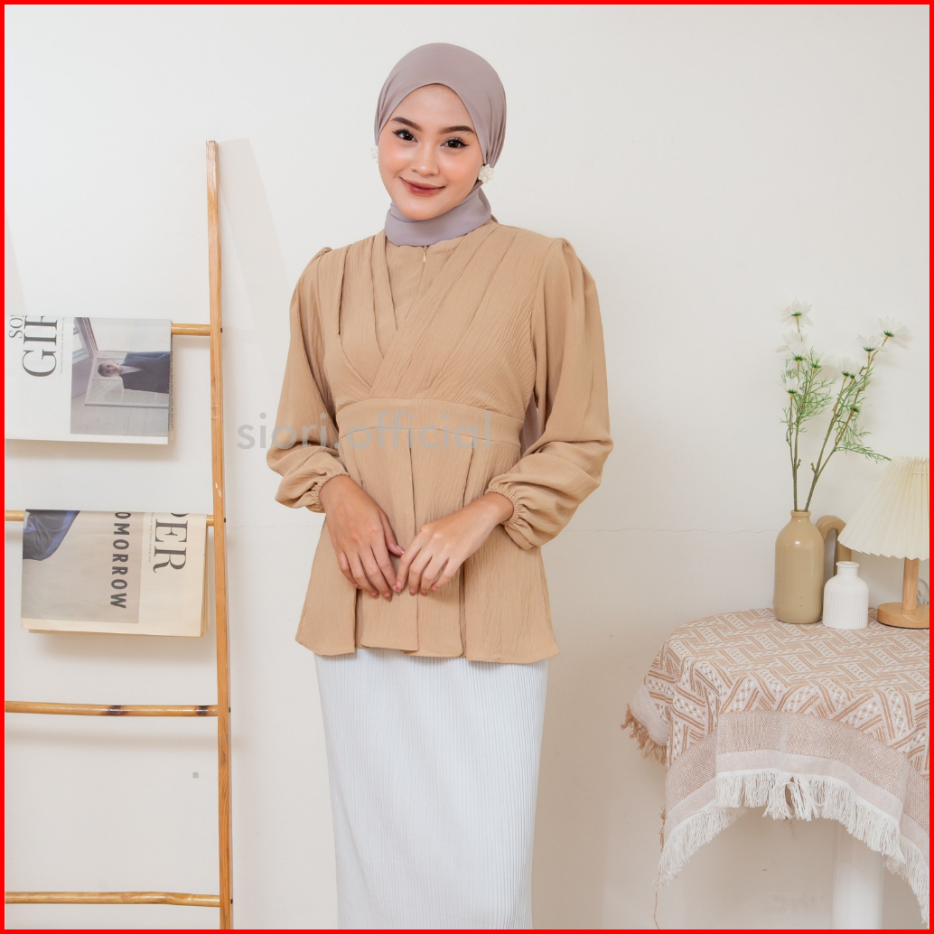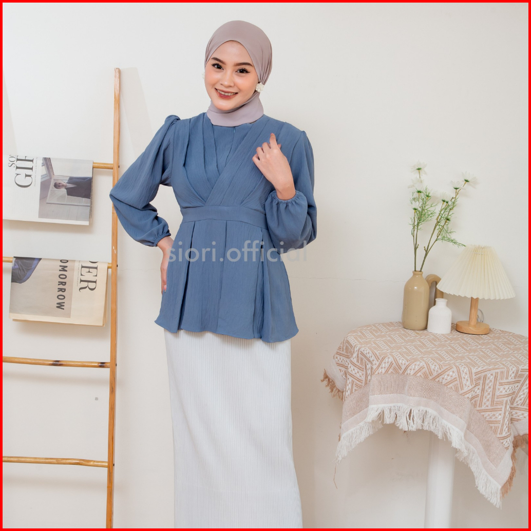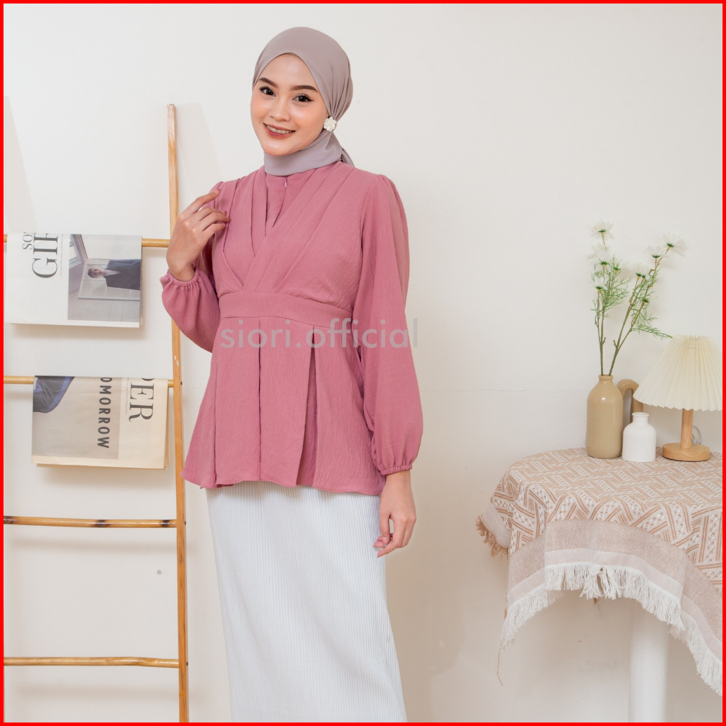 Raya Top Atasan Kemeja Blouse Wanita Polos Crinckle Korean Style By Siori.