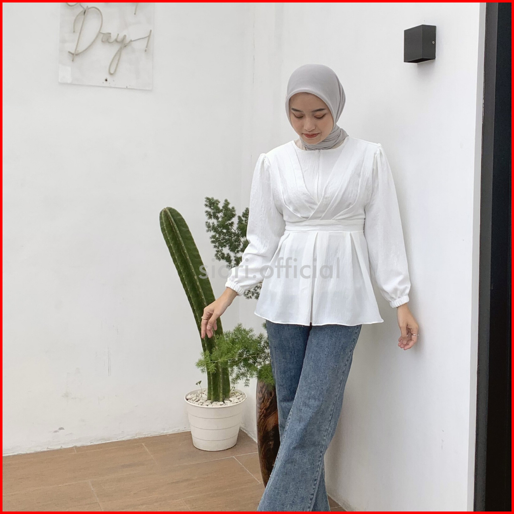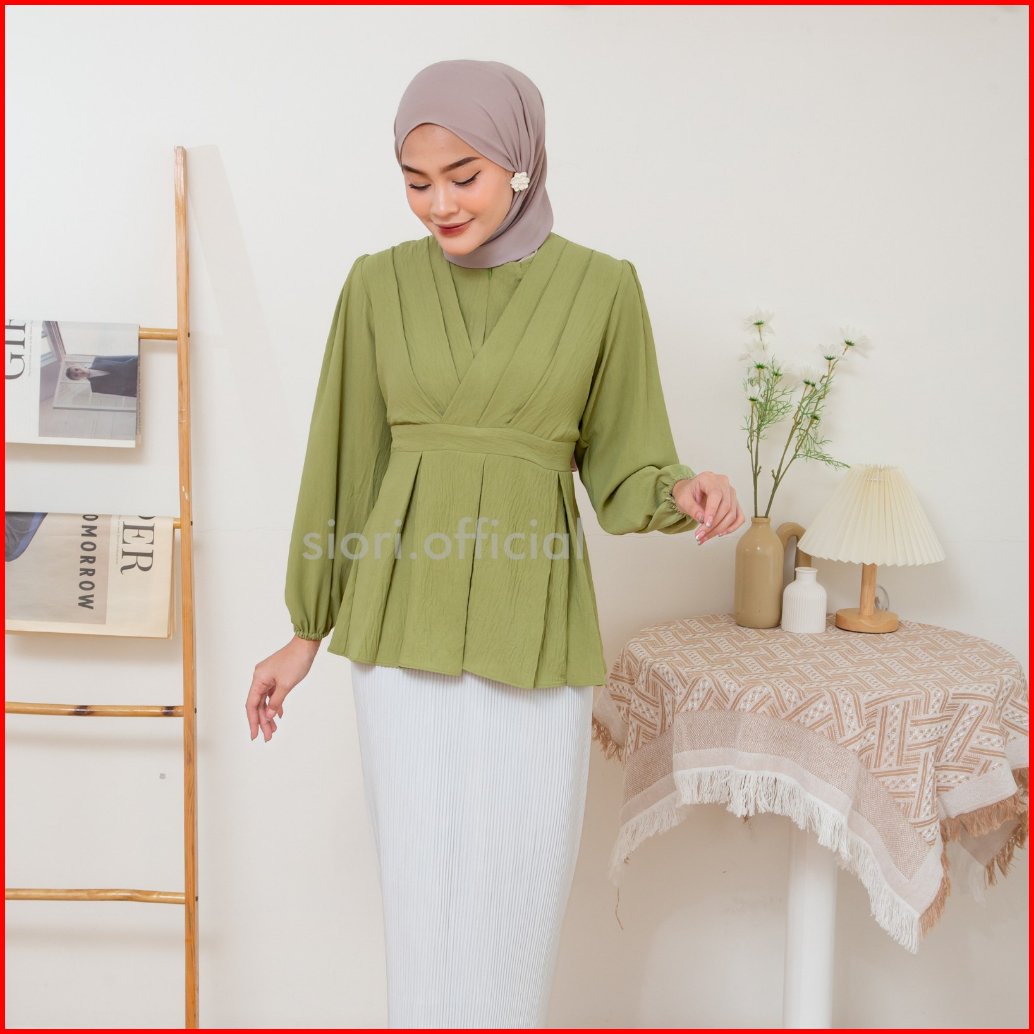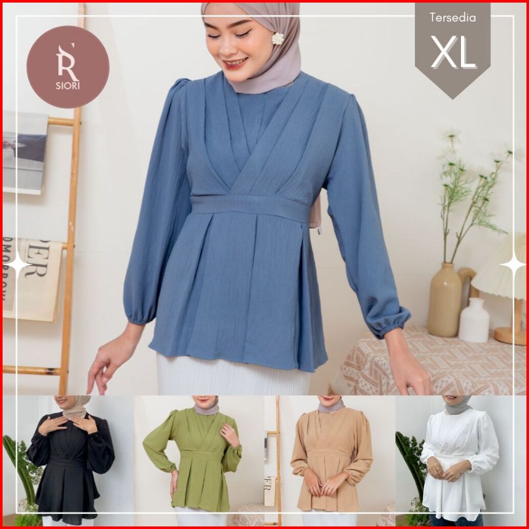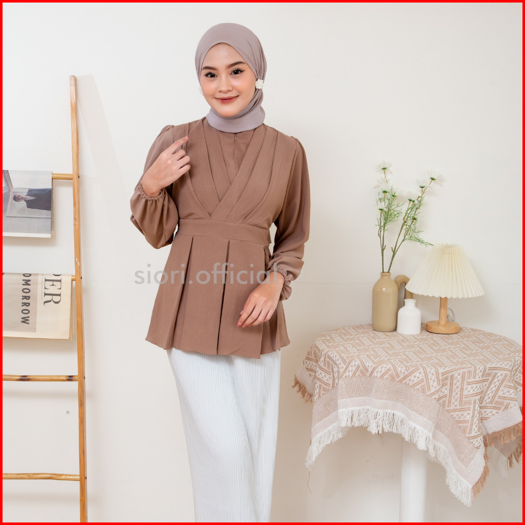 Raya Top Atasan Kemeja Blouse Wanita Polos Crinckle Korean Style By Siori.