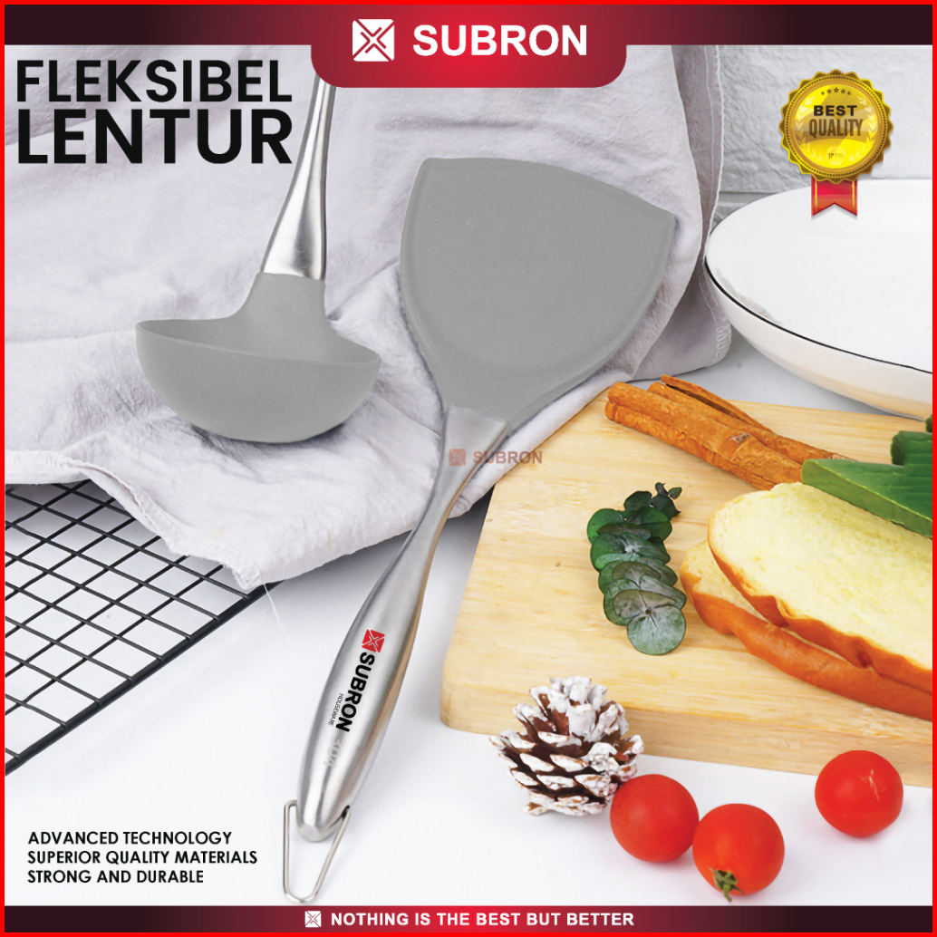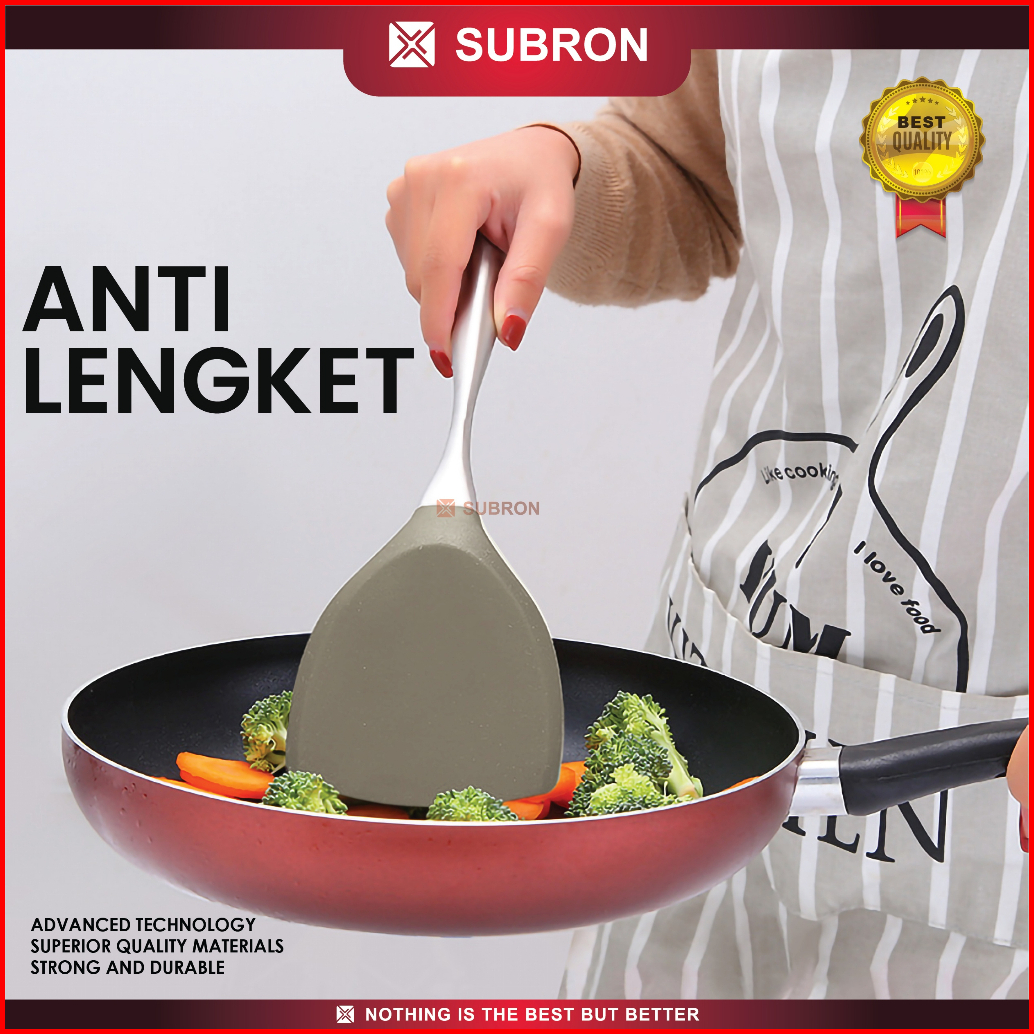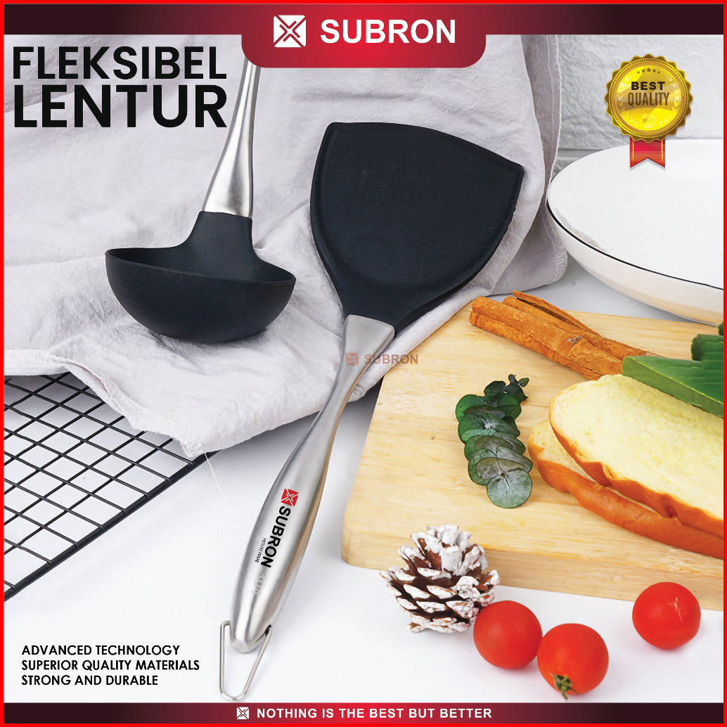 Subron Stainless Sus304 Spatula Centong Silicone Tahan Panas Kualitas Premium Handle Sup Sutil Turner Sodet Irus Masak M