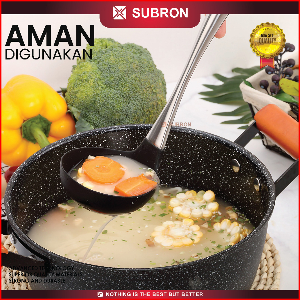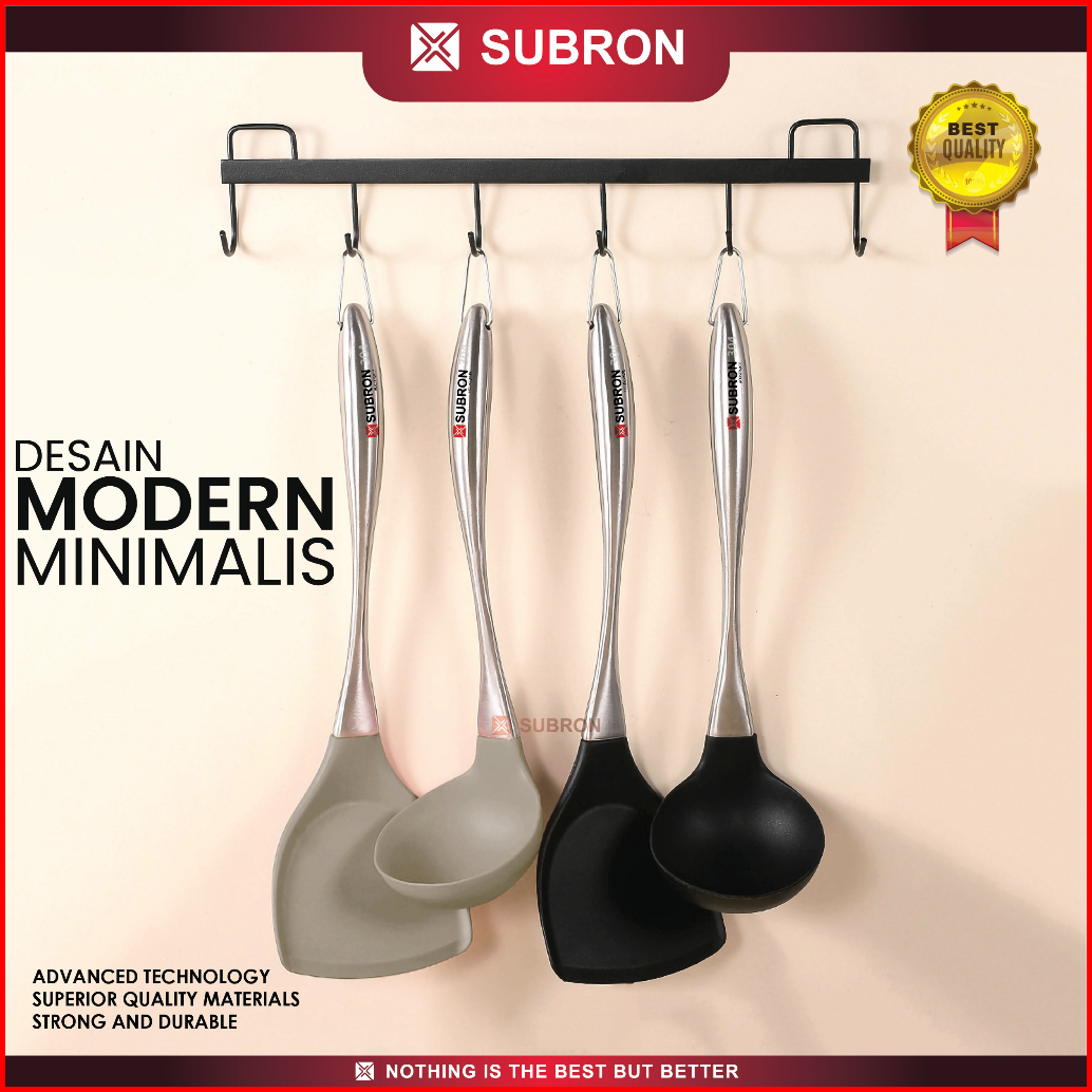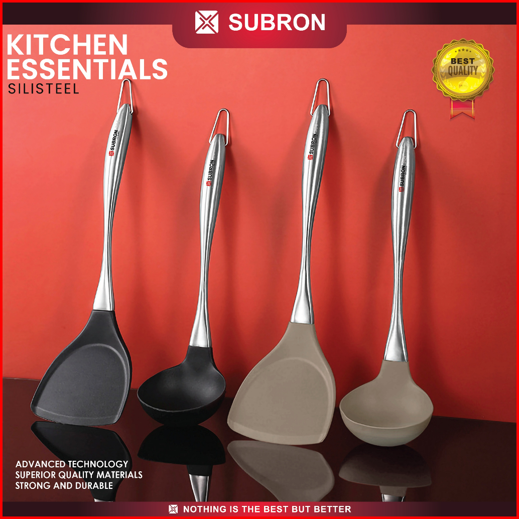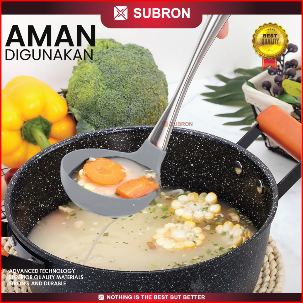 Subron Stainless Sus304 Spatula Centong Silicone Tahan Panas Kualitas Premium Handle Sup Sutil Turner Sodet Irus Masak M