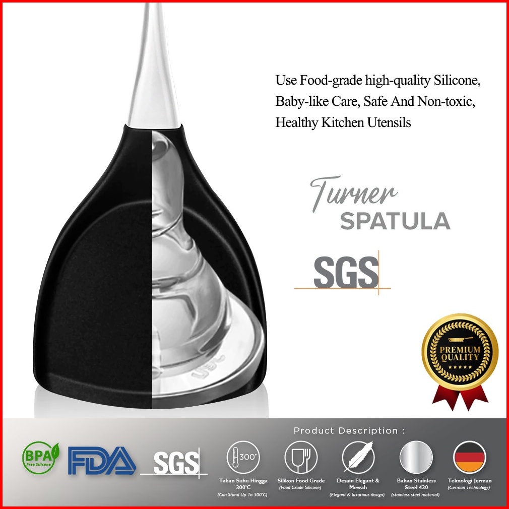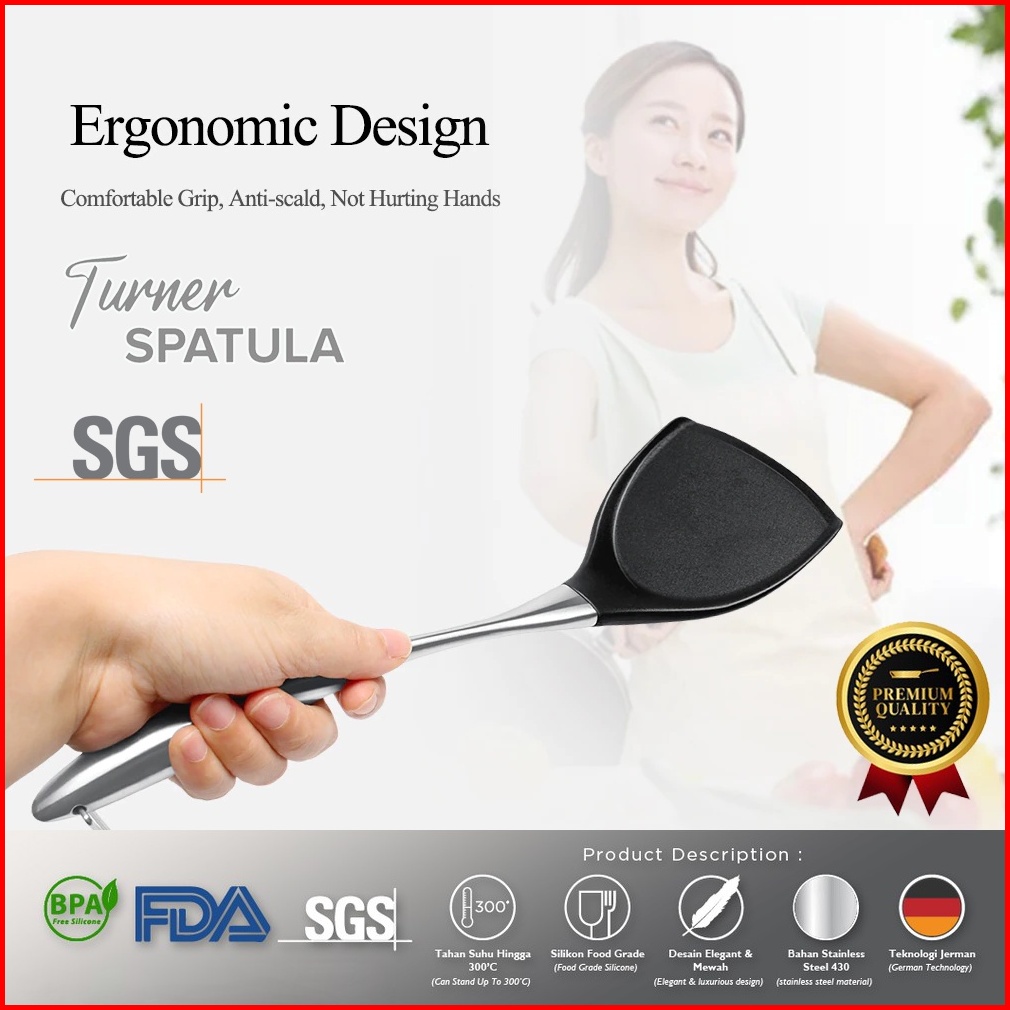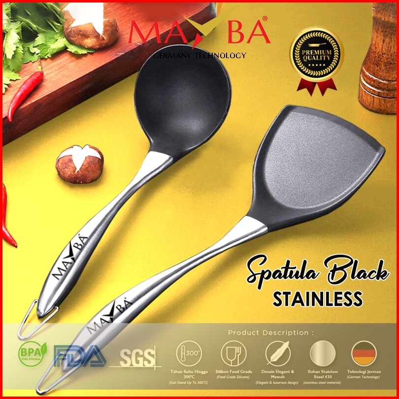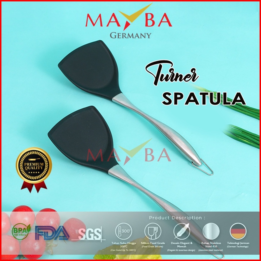 Mayba - Sendok Masak Silicon Turner Black Silikon My2031 Spatula Silicone Stainless Steel Handle Strong Mewah