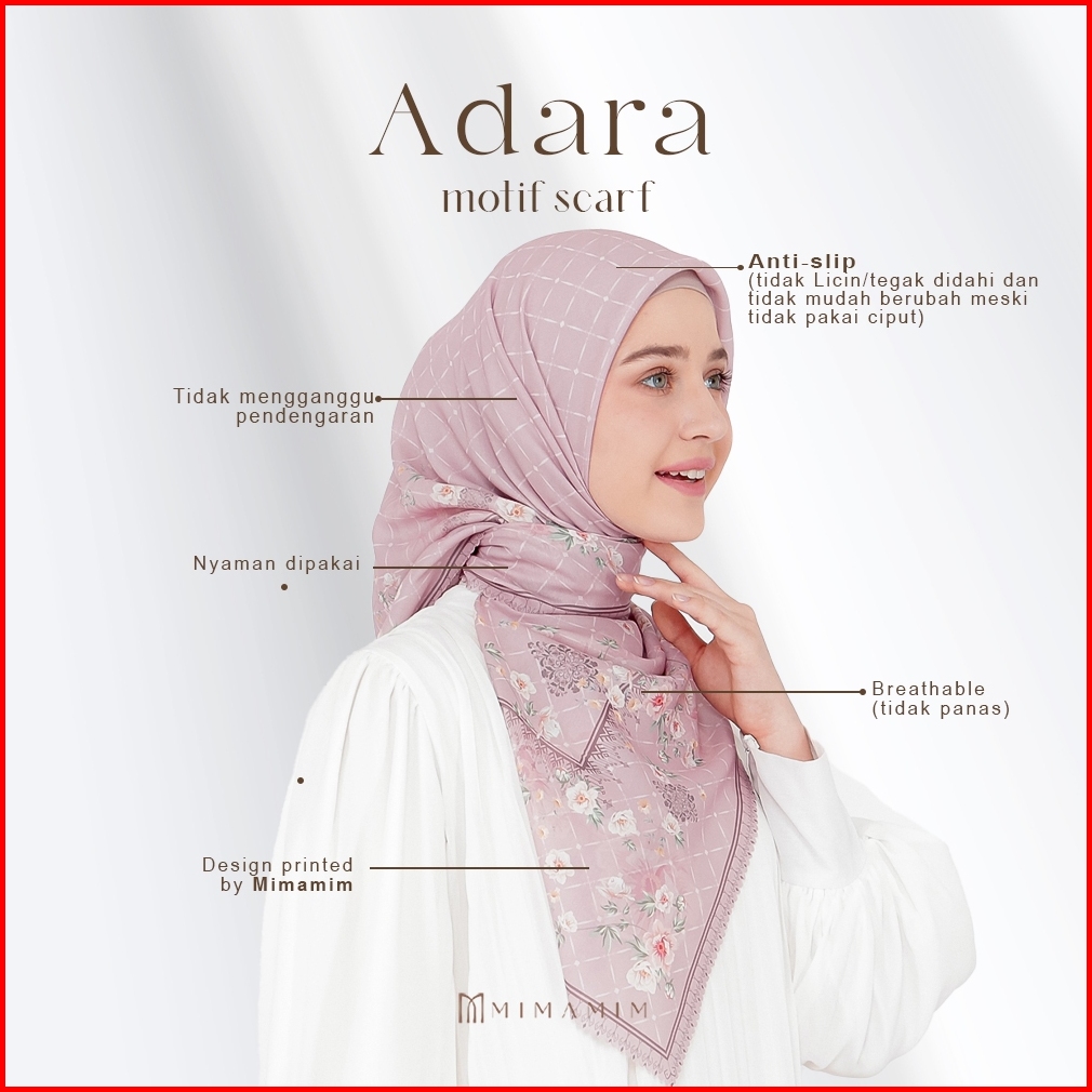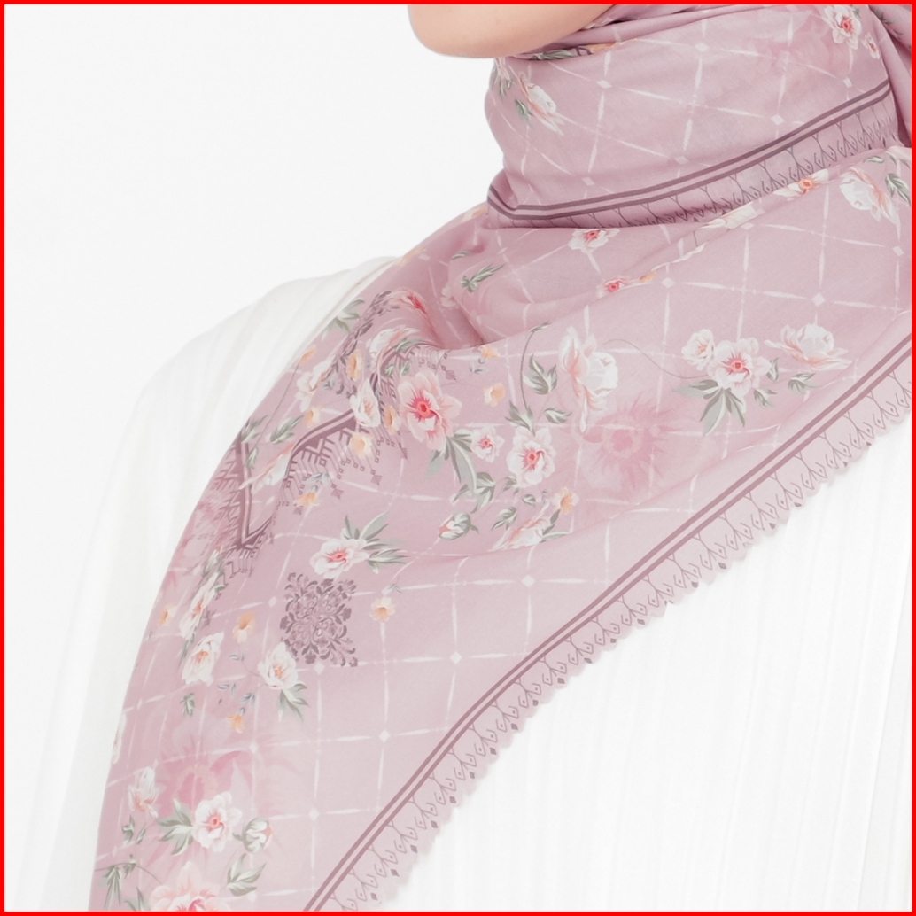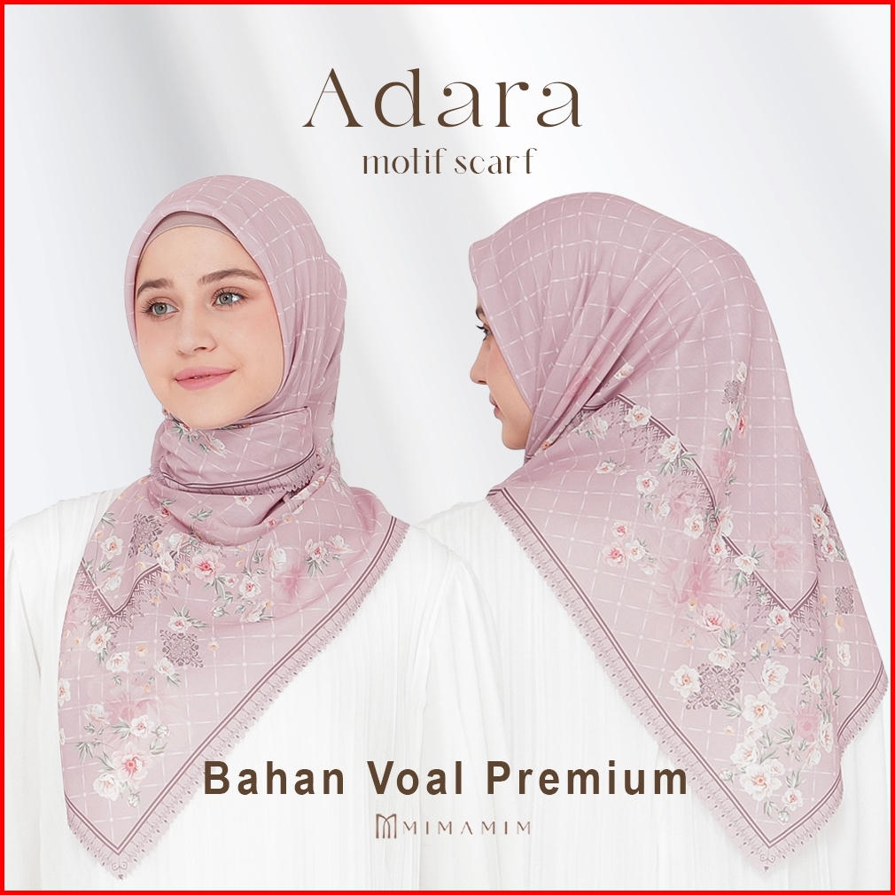 Mimamim Hijab - Adaraa Jilbab Segiempat Motif Printed Scarf Voal Premium Kerudung Square Lasercut