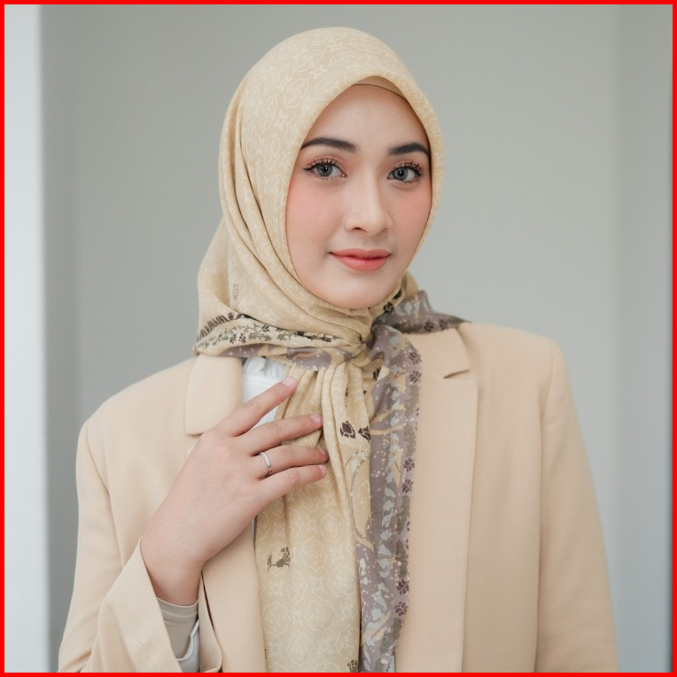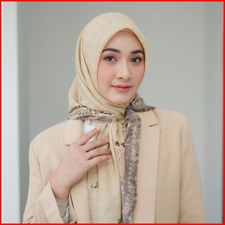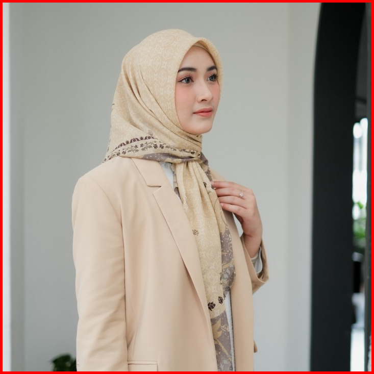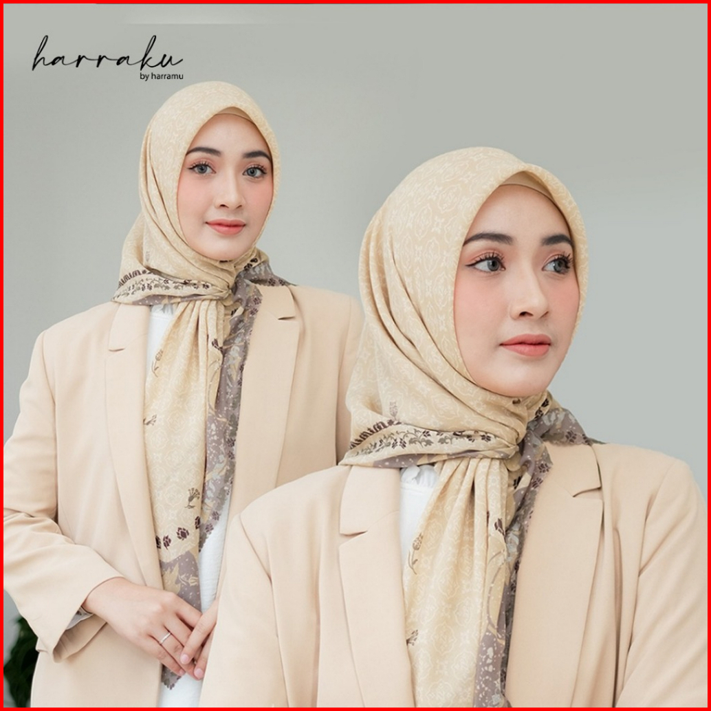 Harraku Hijab Voal Printing Segiempat Motif Kamaria Cream
