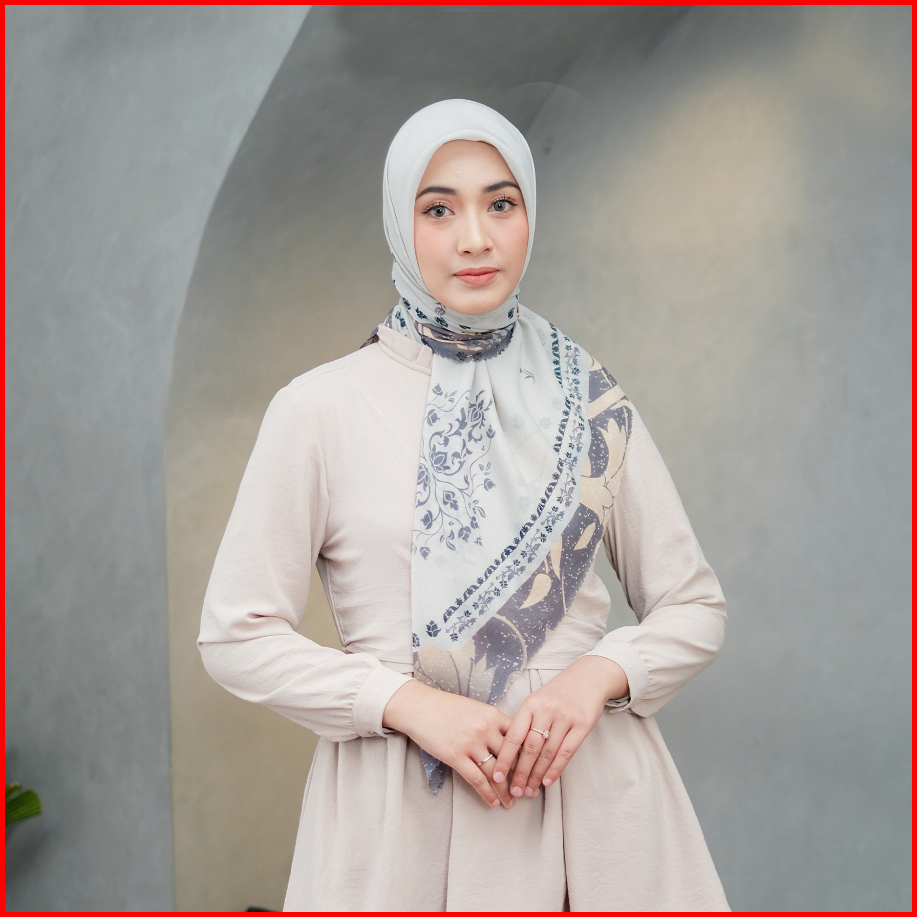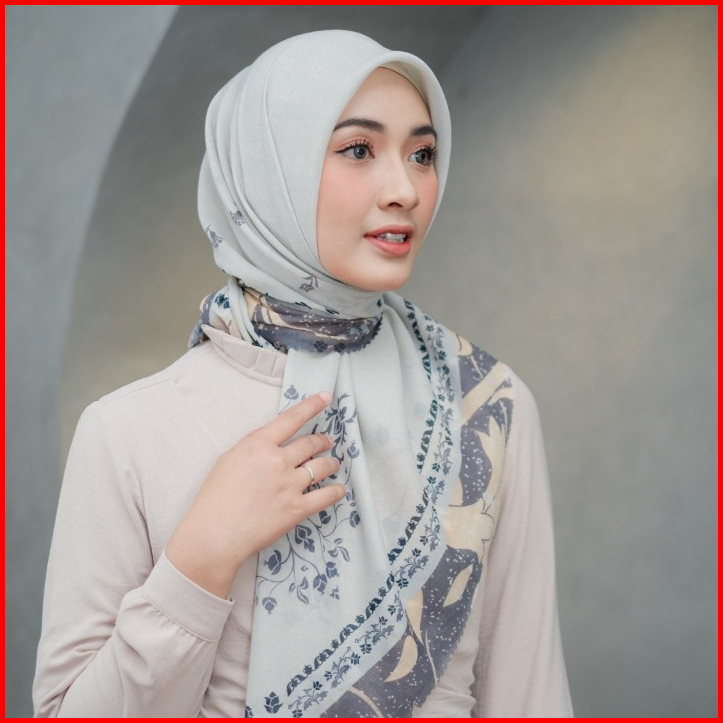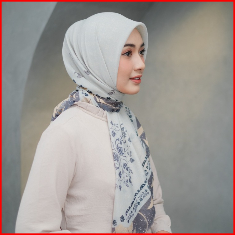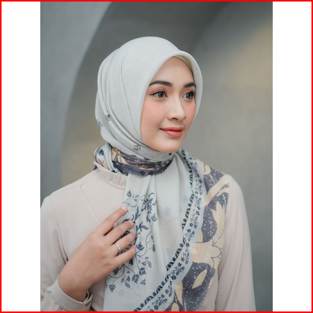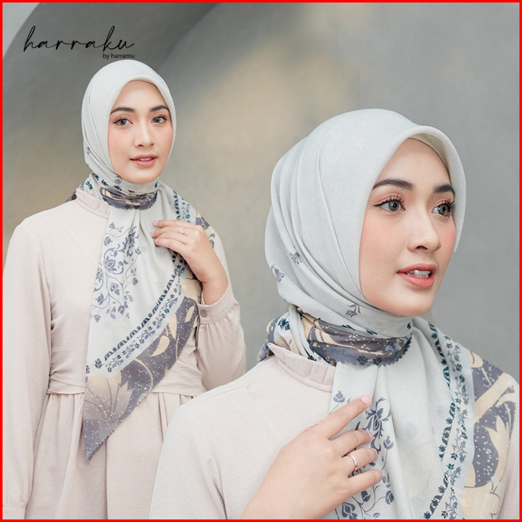 Harraku Hijab Voal Printing Segiempat Motif Kamaria Abu