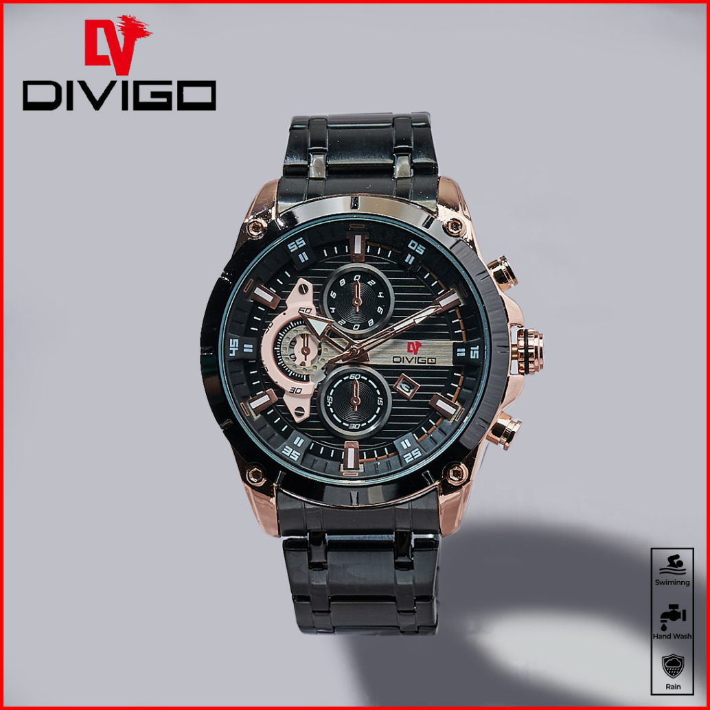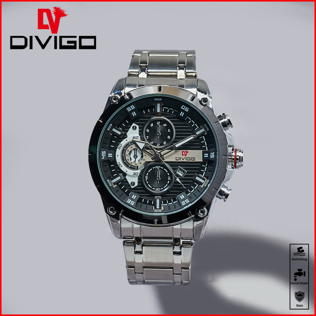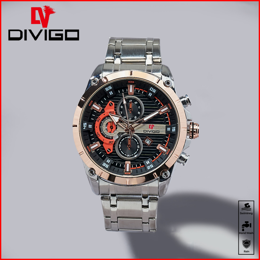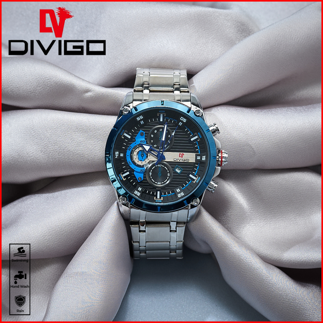 Jam Tangan Pria Divigo Original Dv-7017-1 All Staintless Steel Free Box Water Proof 3atm