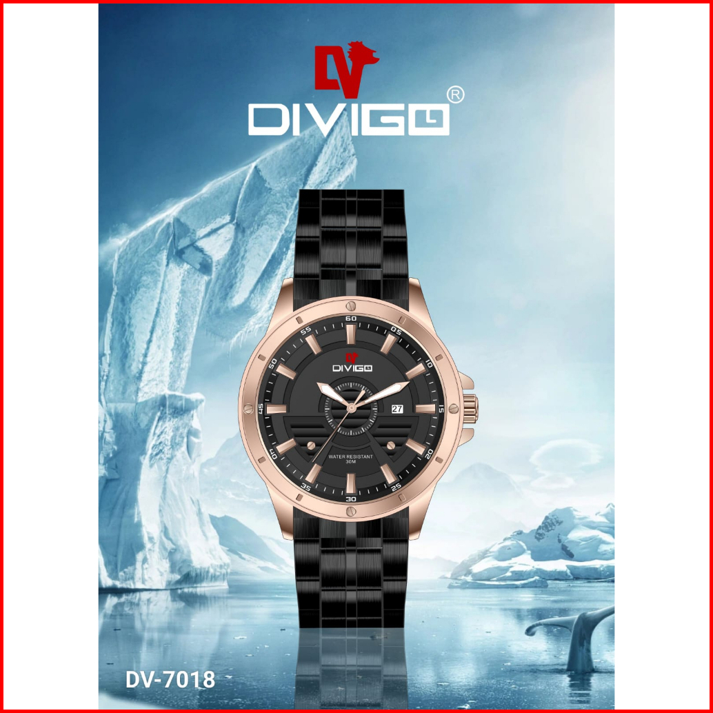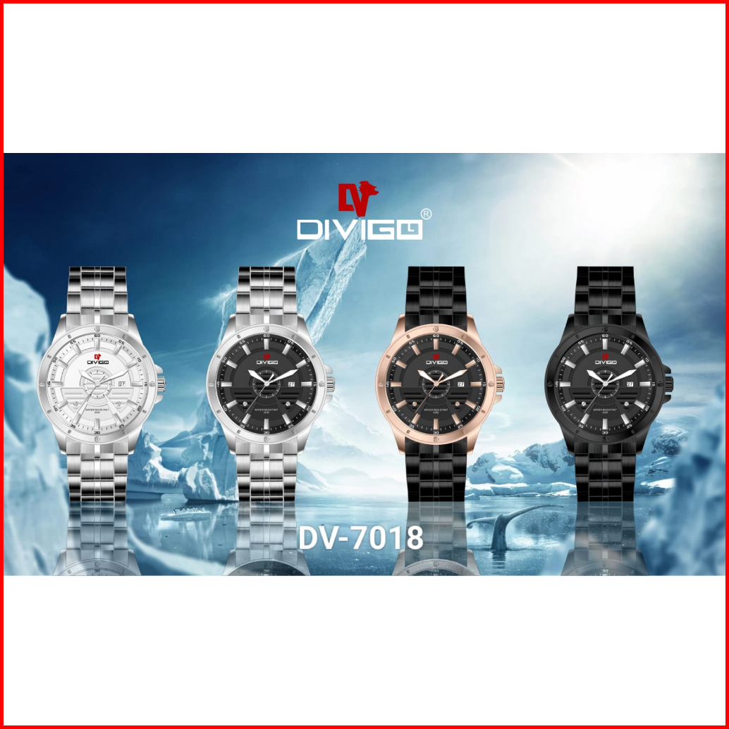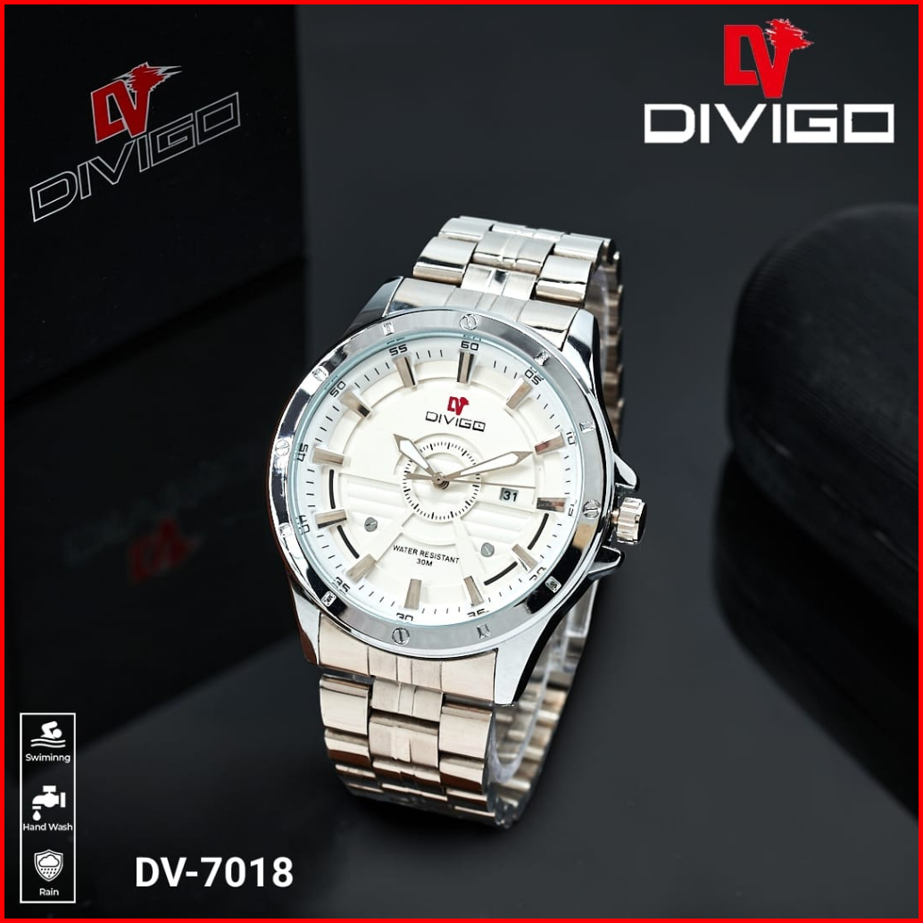 Jam Tangan Pria Divigo Original Dv-7018 Rantai Elegant Water Resist Free Box