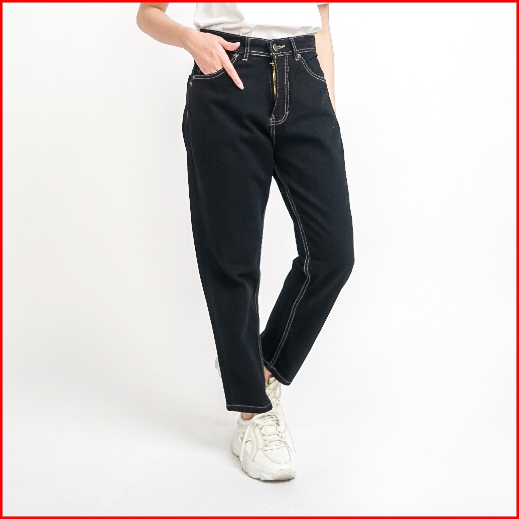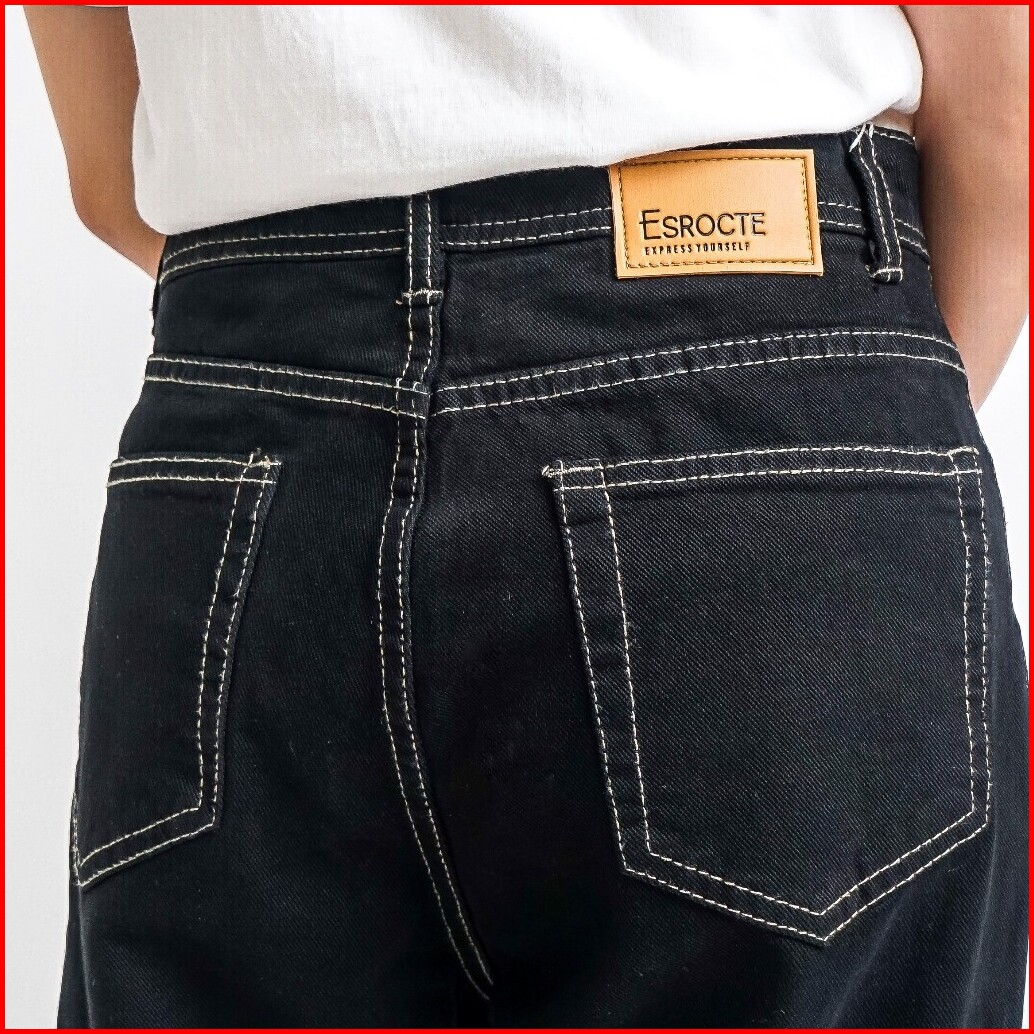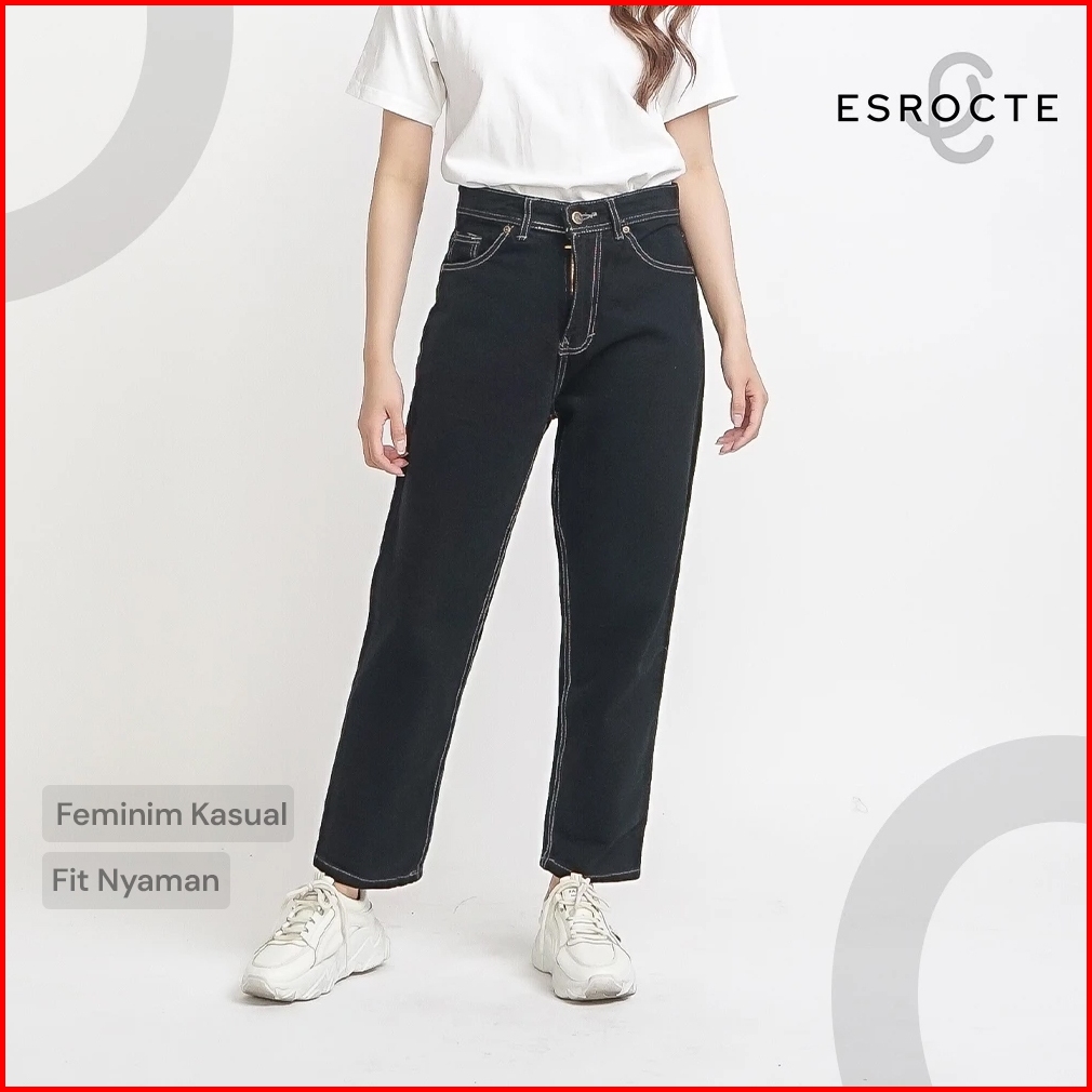 Esrocte Zaya Pants Celana Boyfriend Jeans High-waist Wanita Hitam Clash 2638