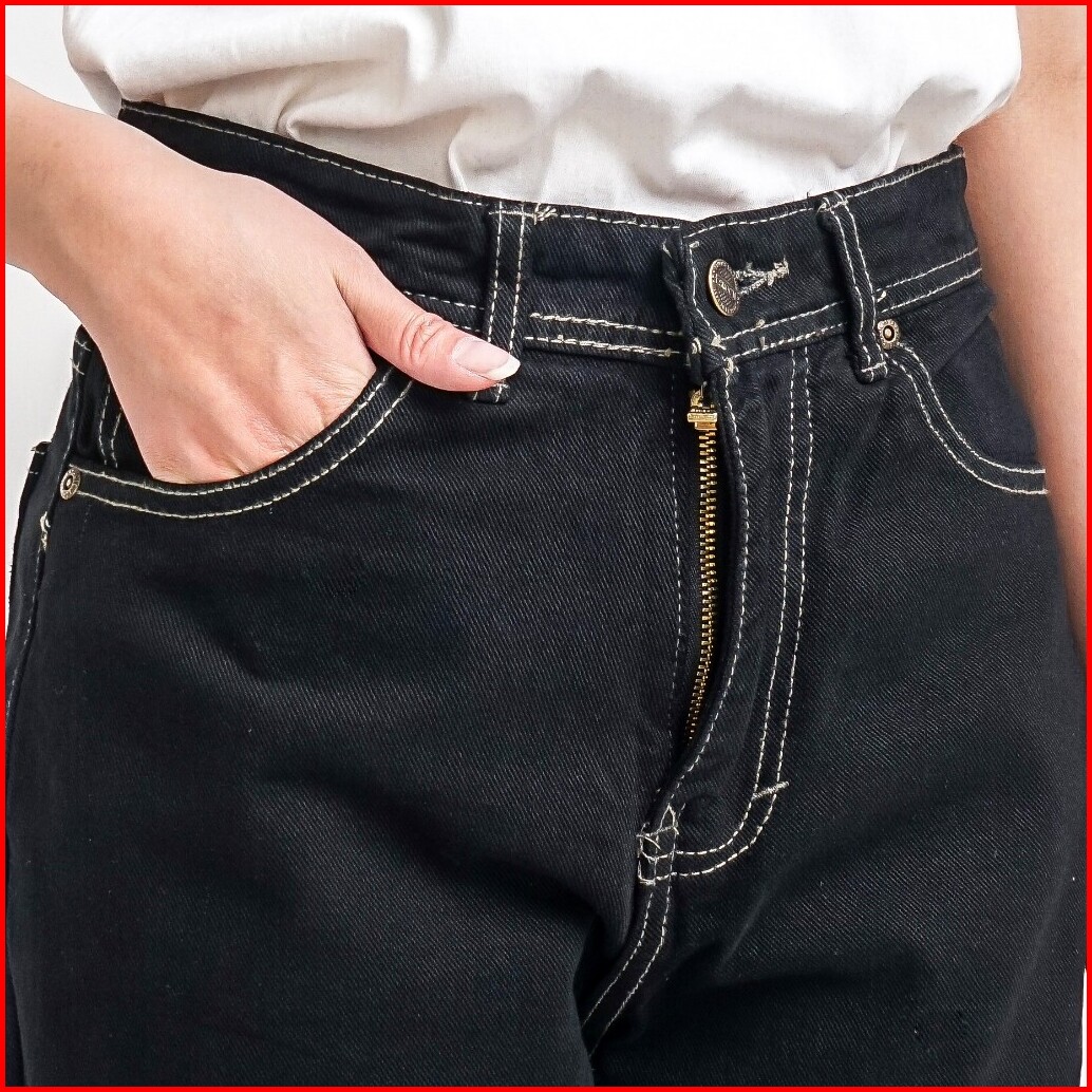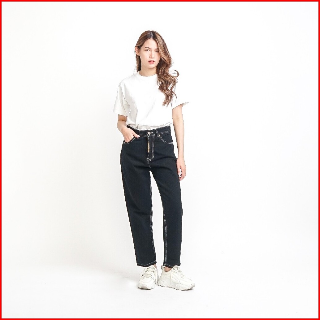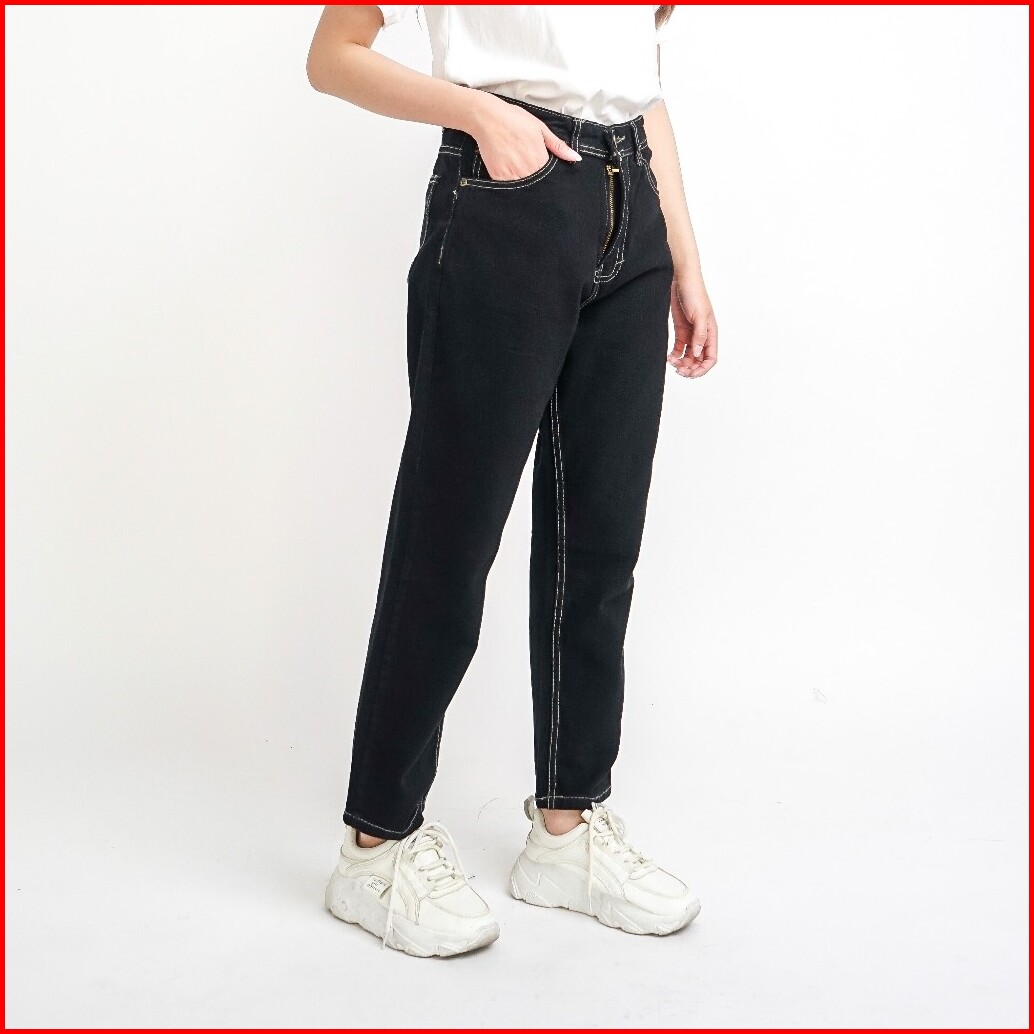 Esrocte Zaya Pants Celana Boyfriend Jeans High-waist Wanita Hitam Clash 2638