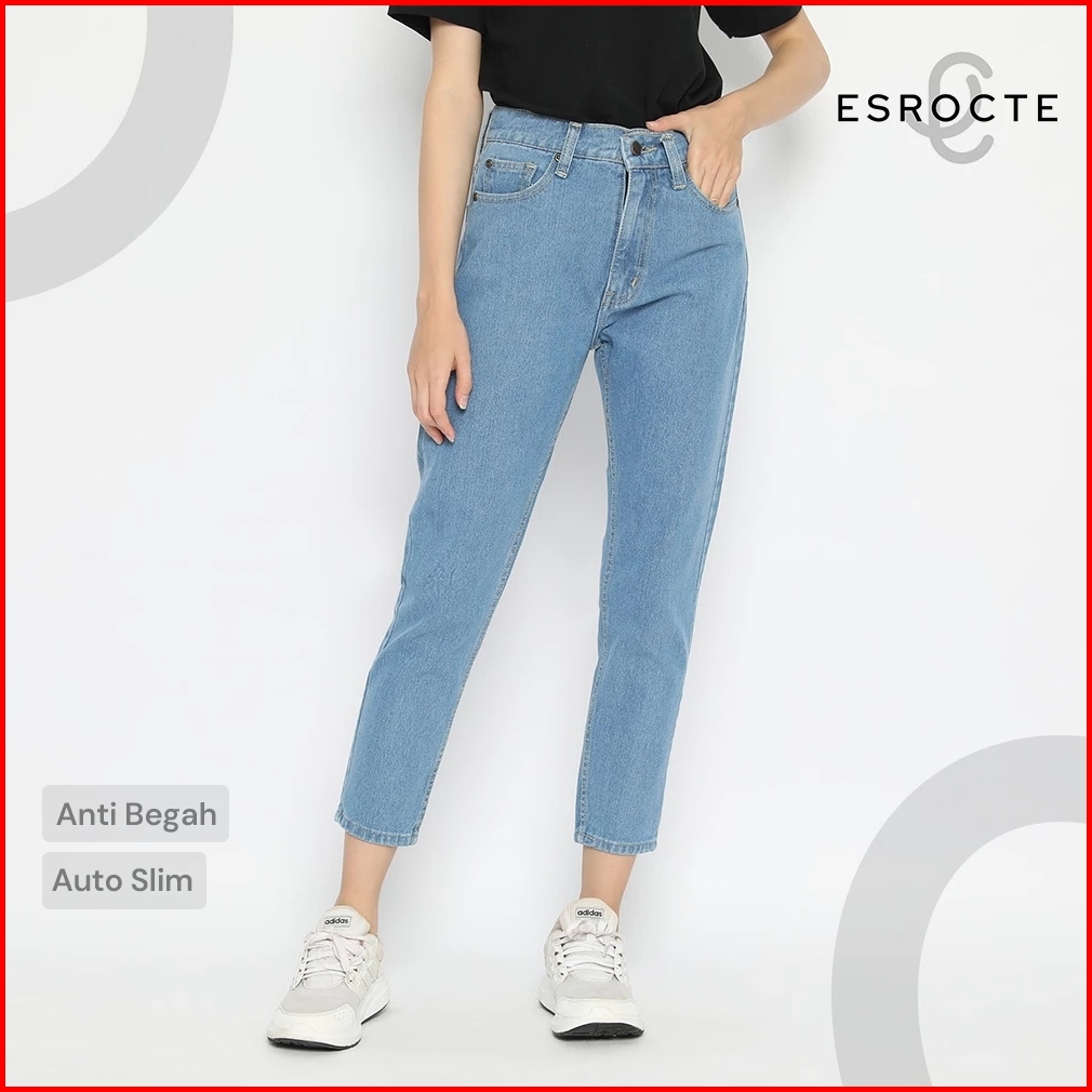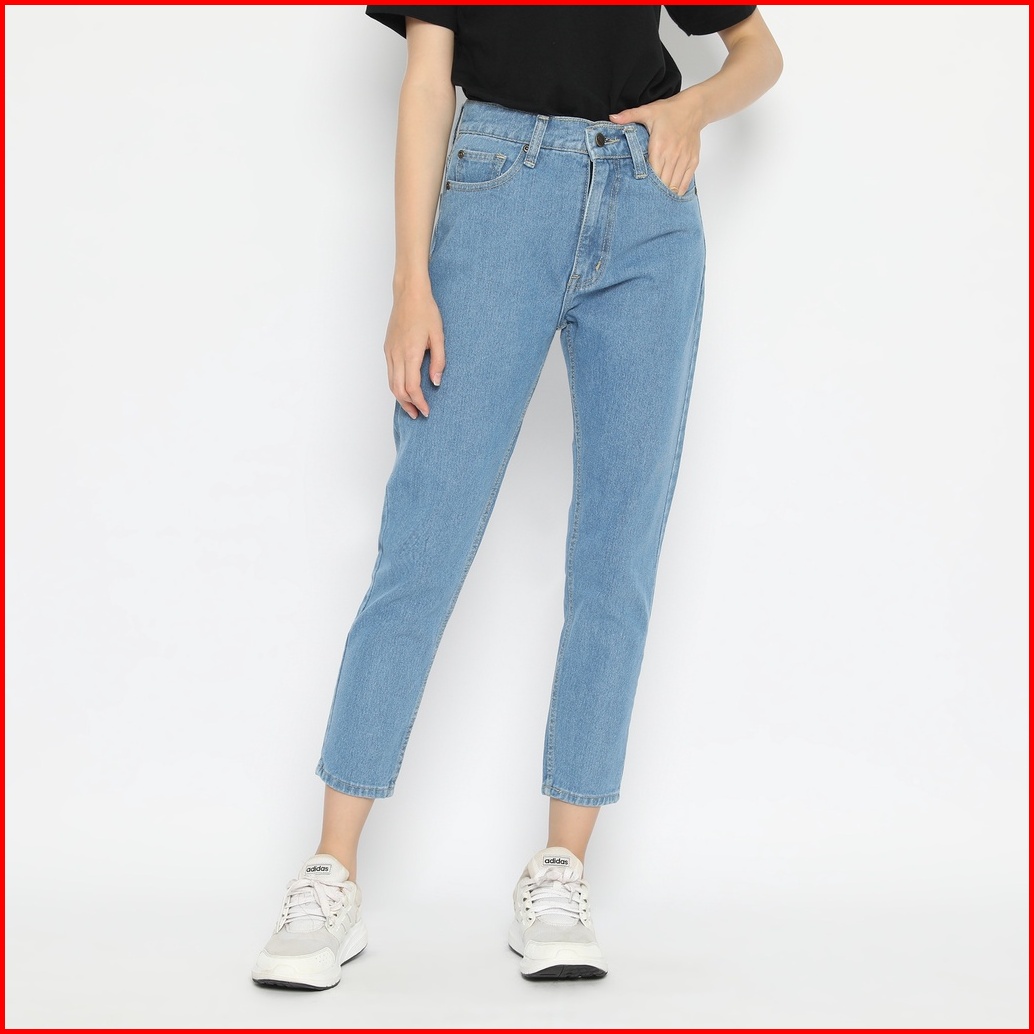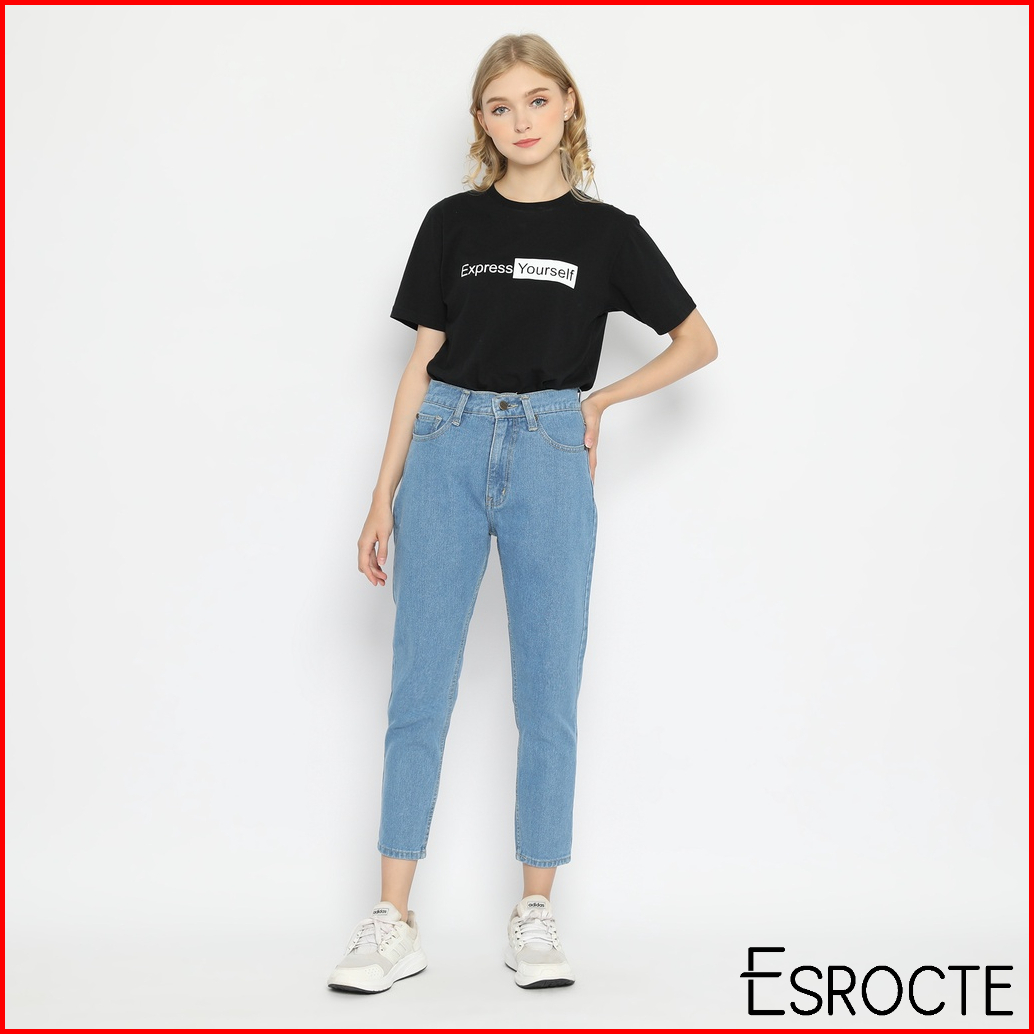 Esrocte Celana Rubber Boyfriend High Waist Jeans Wanita P31 - Biru Folder 26-38