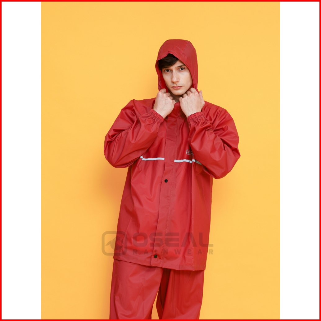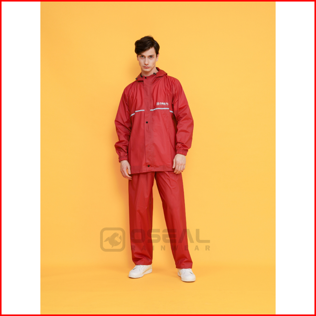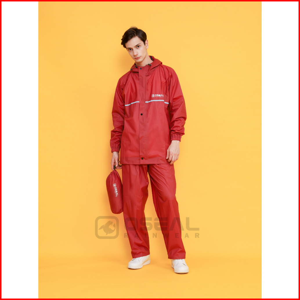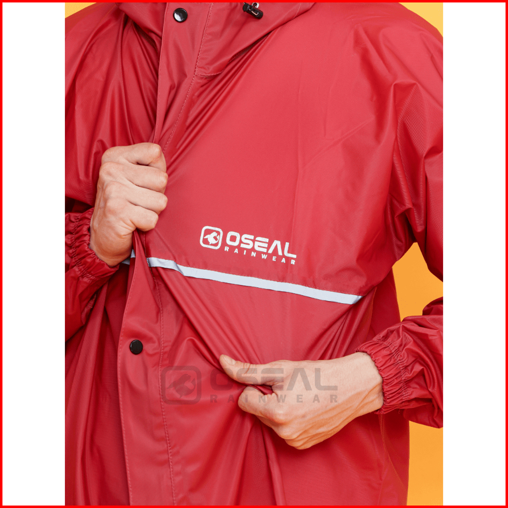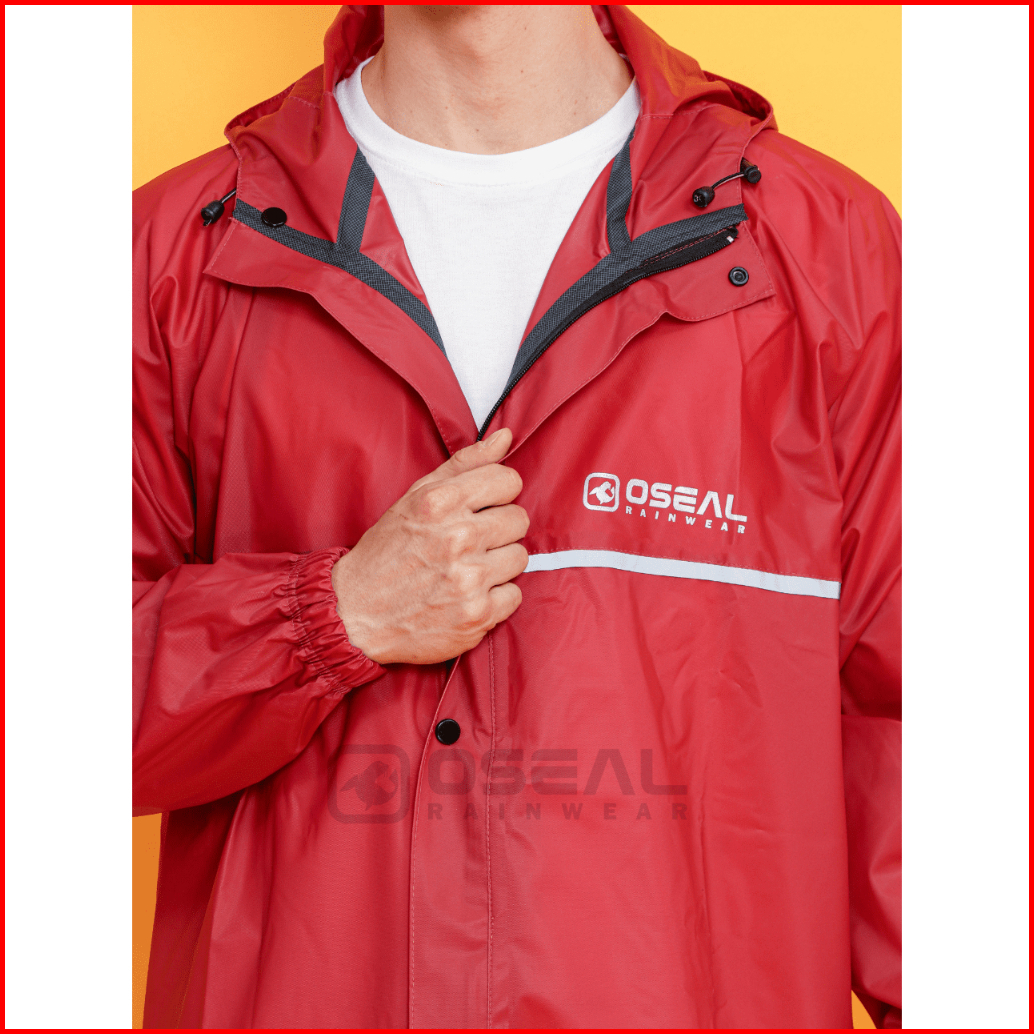 Jas Hujan Oseal Full Seal Raincoat Mantel Pria Wanita Dewasa Shine Series Maroon