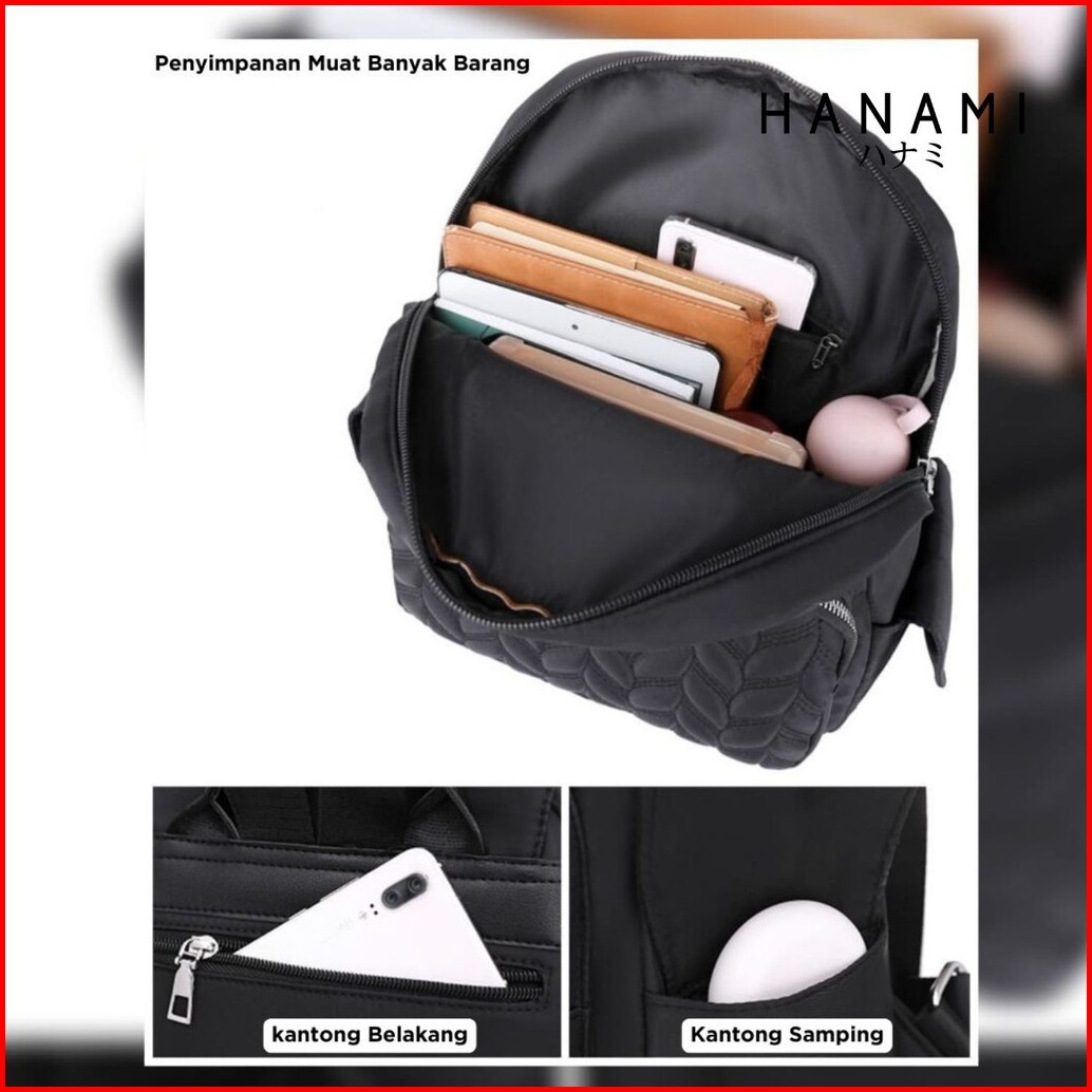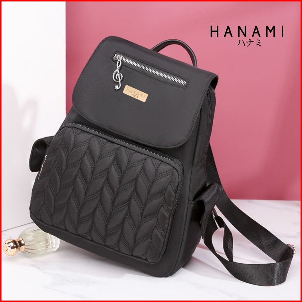 Hanami Tas Ransel Wanita Premium Mahela Backpack Sekolah Remaja Kuliah Kerja Hitam Branded Ta490b5