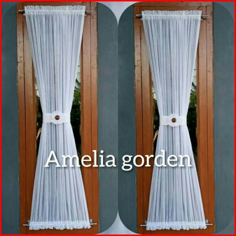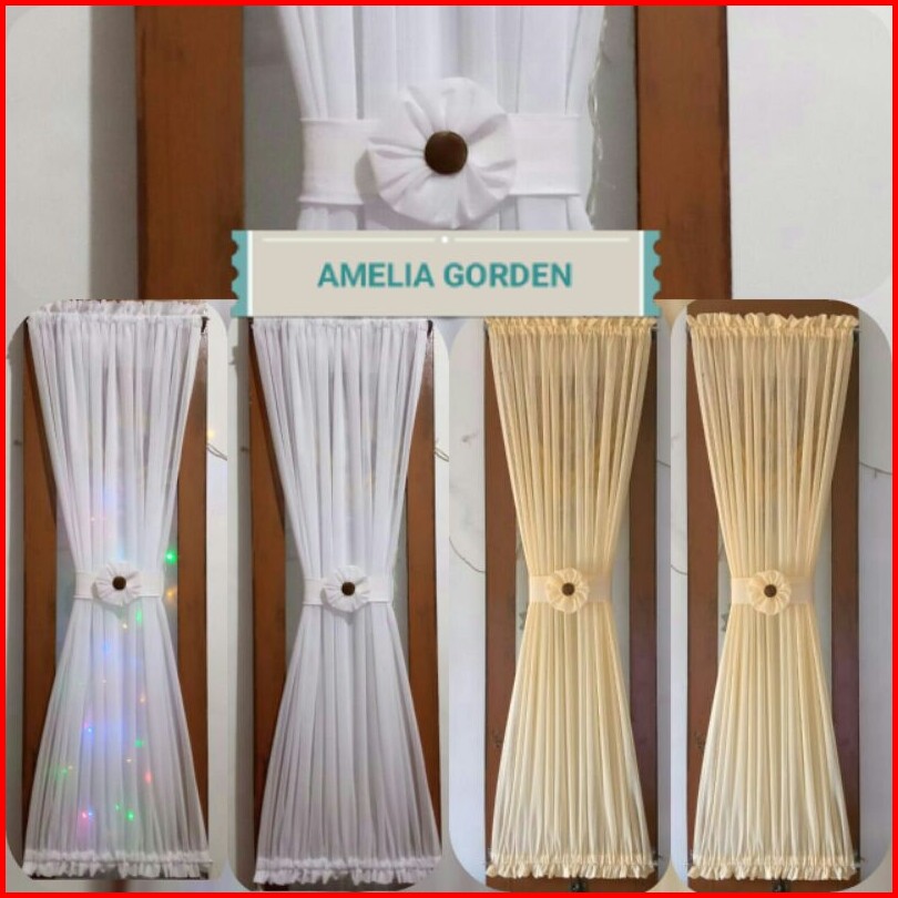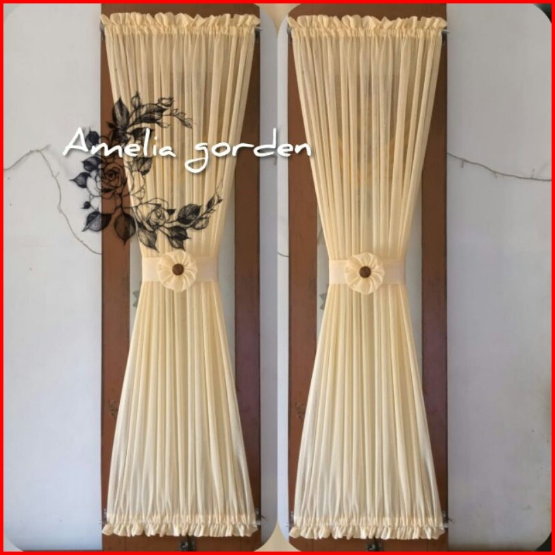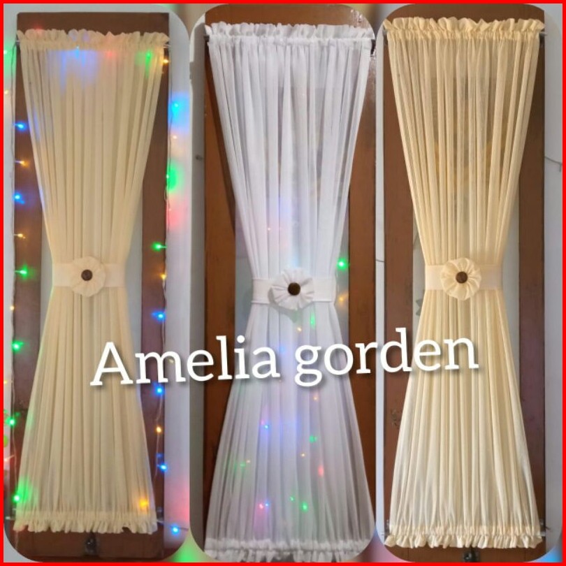 Gorden Spiral Vitrase Polos Gorden Siang Gorden Jendela Minimalis Crem Dan Putih Ukuran Lebar 30cm Stick Pull Set