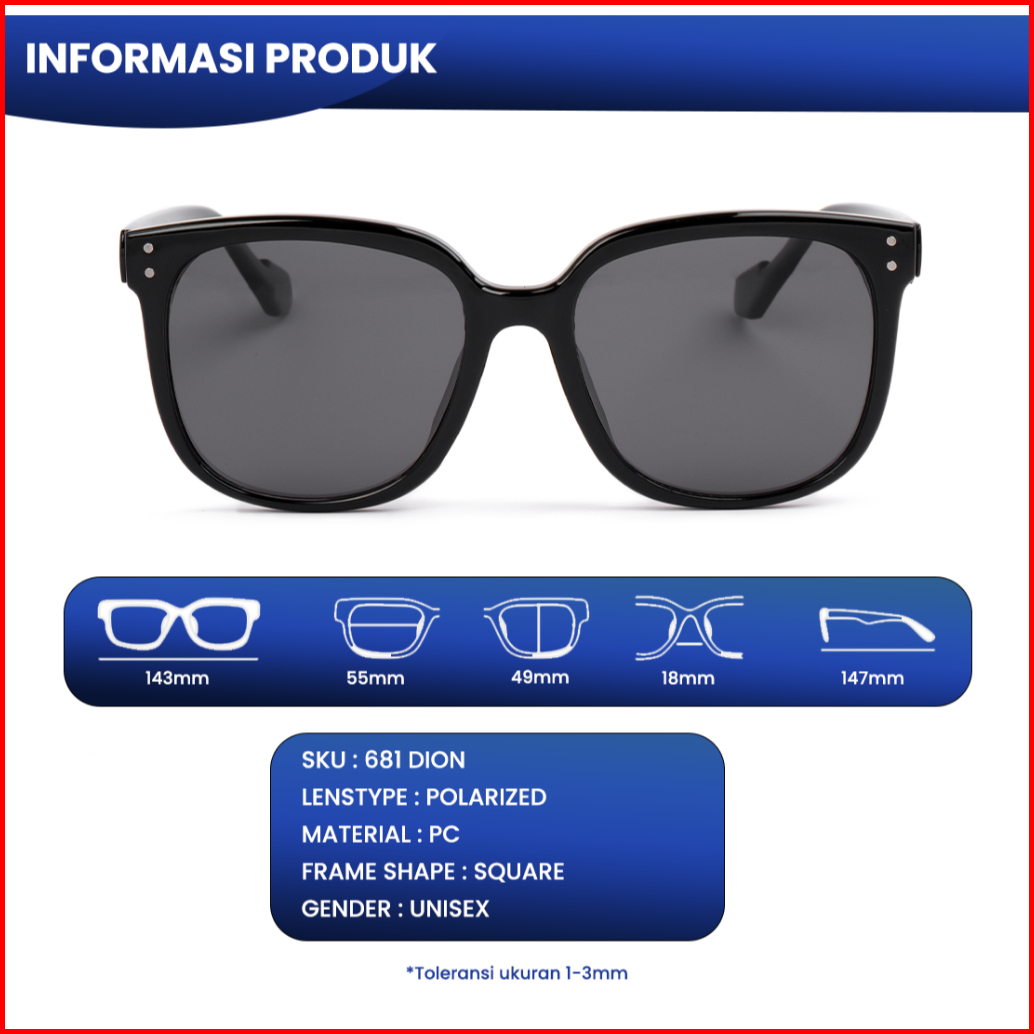 Iooi Eyewear - Kacamata Kotak Hitam Sunglasses Uv 400 Pria Wanita 681