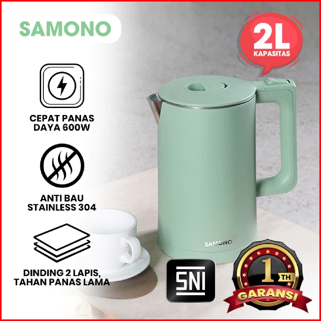 Samono Electric Kettle Teko Listrik Pemanas Air Kapasitas 2 Liter Lapisan Ganda Water Heater Sw-eks17b