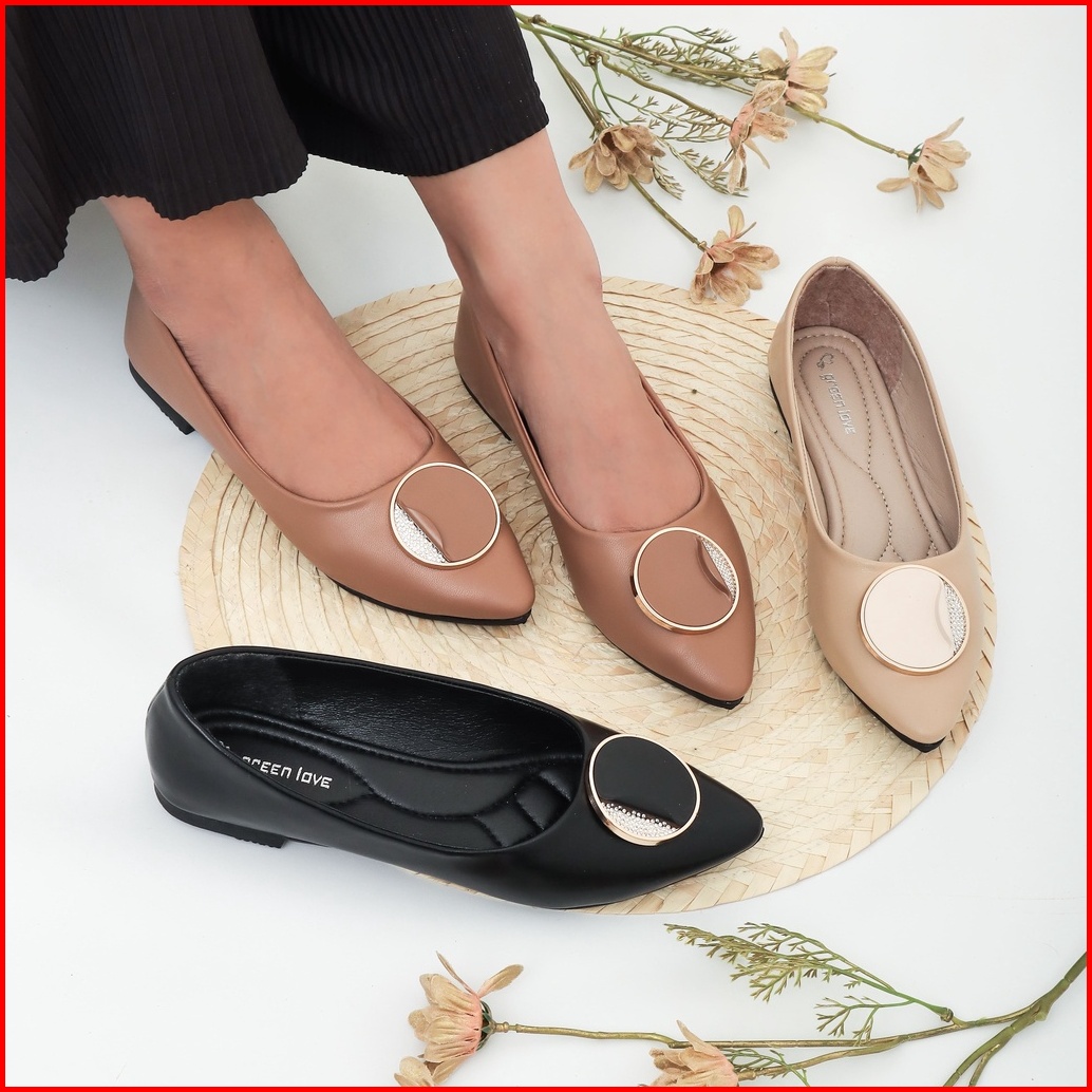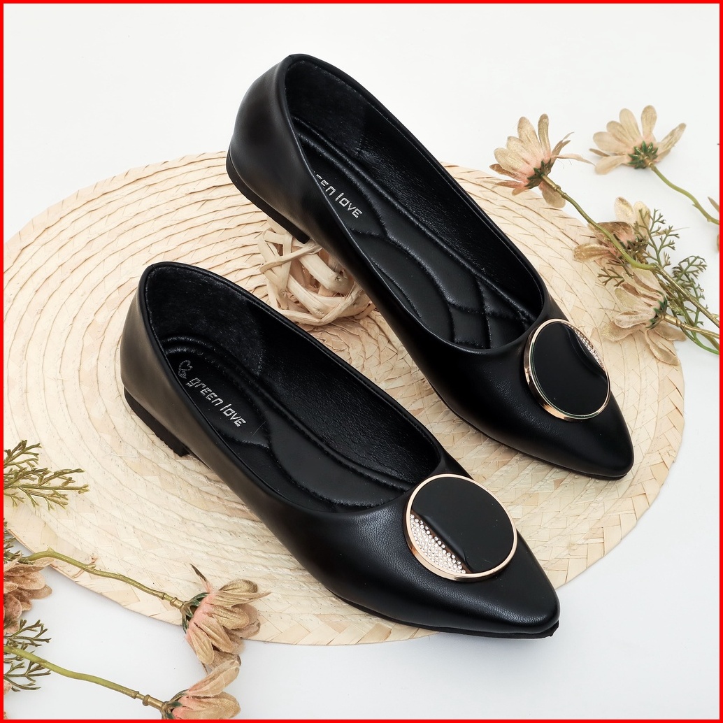 Green Love Sepatu Flatshoes Wanita Nova - Elegant - Hitam - Kekinian