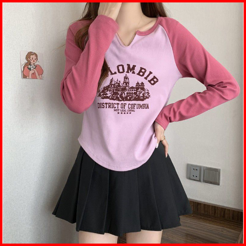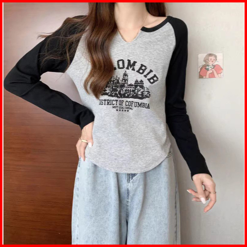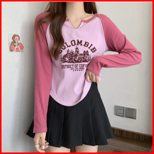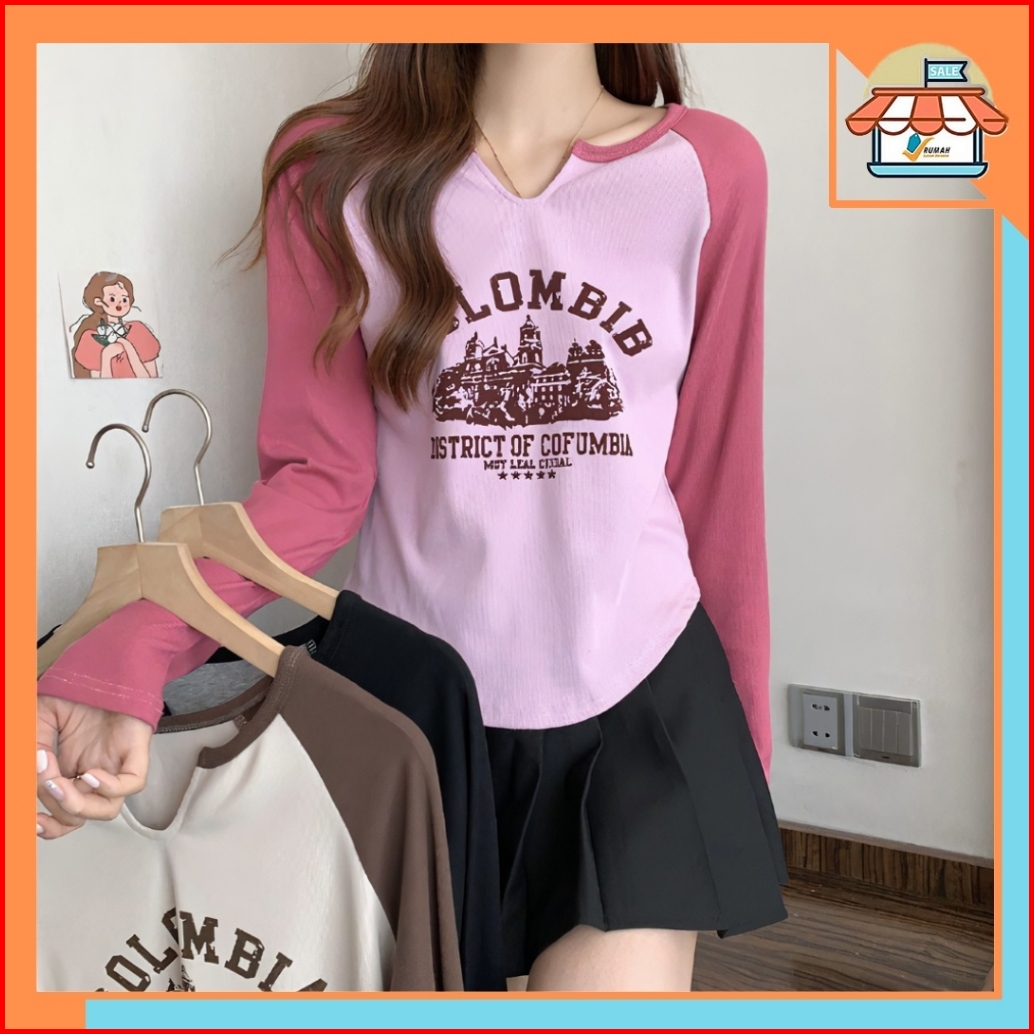 Rsb Bj423 Baju Kaos Atasan Crop Top Rajut Colombia Wanita Fashion Korean Kekinian Lengan Panjang