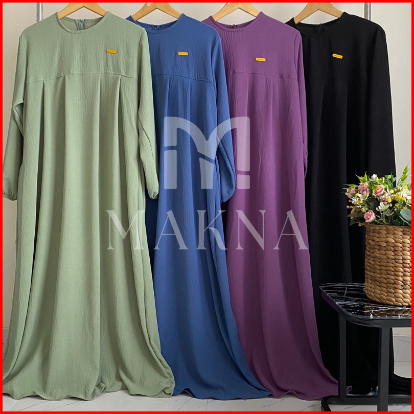 Nayla Dress Gamis Dewasa Polos Simple Bahan Crinkle Airflow Resleting Belakang Ld 110