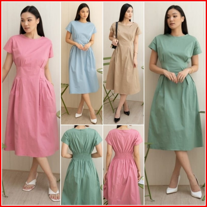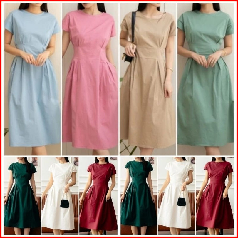 Best Seller Recommended Premium Vyper Plain Poplin Midi Dress Vintage Plain Classic Midi Dress Sheliciousroom