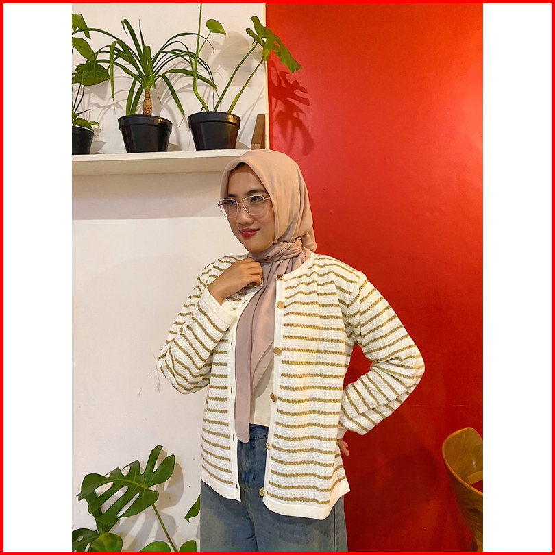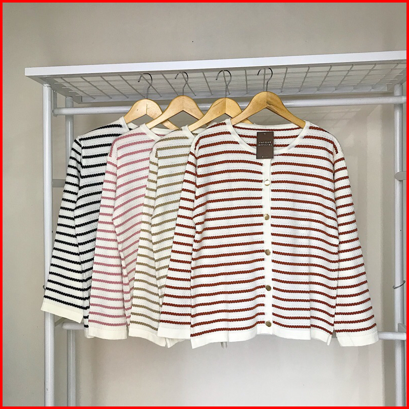 Fafour Azelya Cardigan Rajut Wanita Stripe Two Tone 3d Korean Style Knitwear