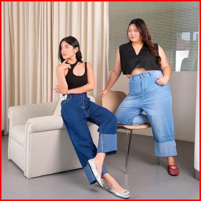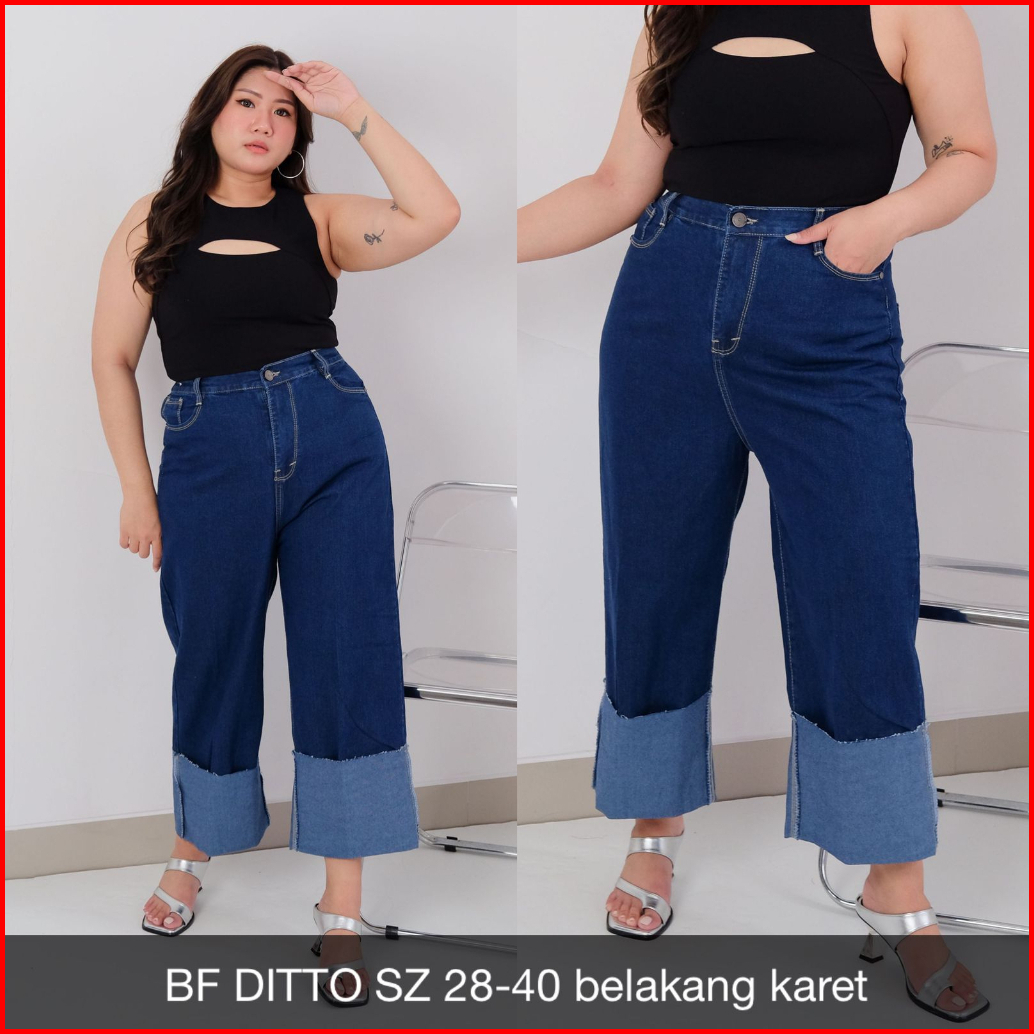 Celana Jeans Wanita Ukuran Normal Jumbo Bf Ditto Dark Light Jeans Pinggang Belakang Karet Anti Begah