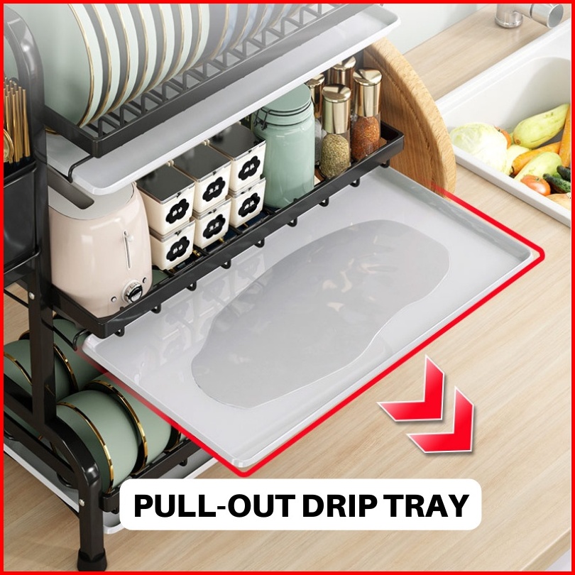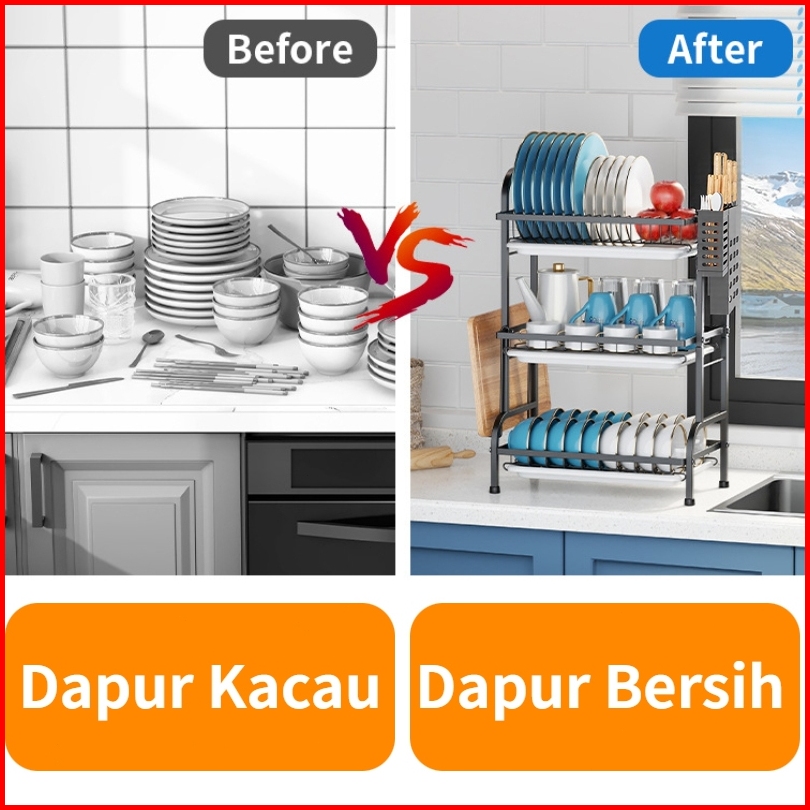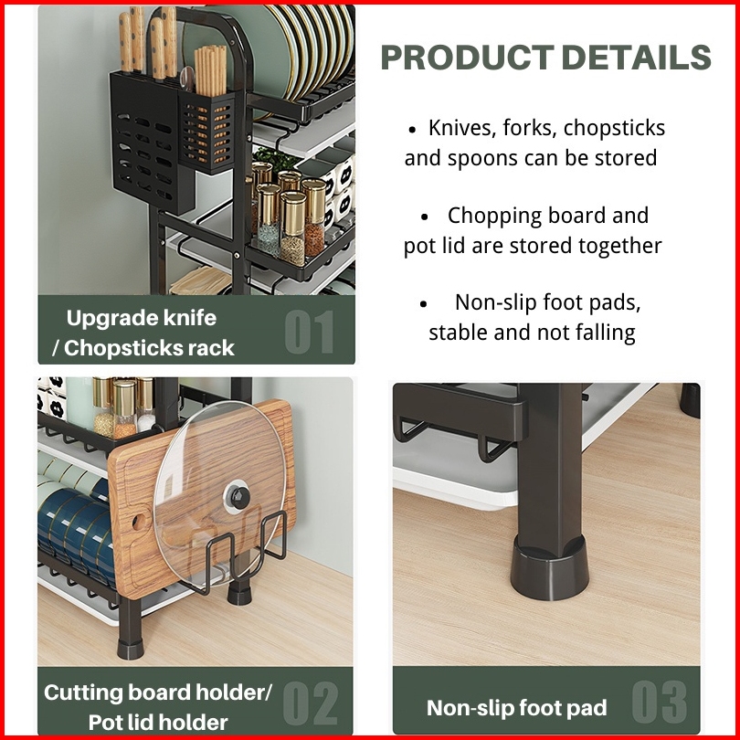 Rak Piring Stainless Steel Rak Dapur Cuci Piring Wastafel Rak Piring Penyimpanan Rak Peralatan Dapur Dengan Aksesoris 2