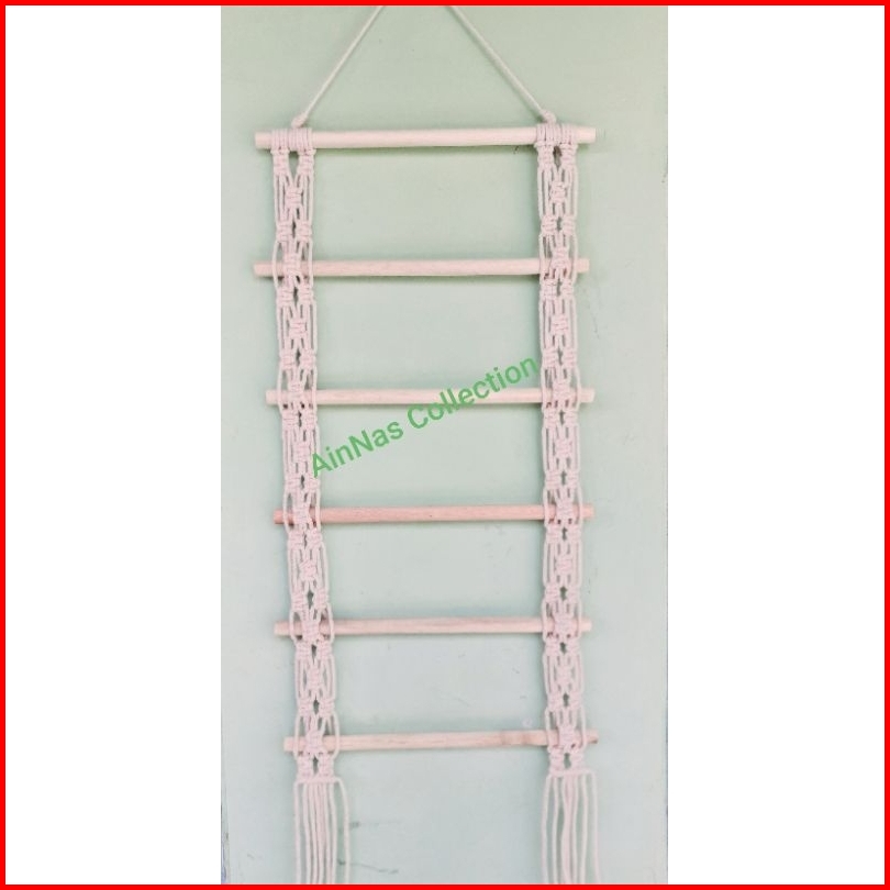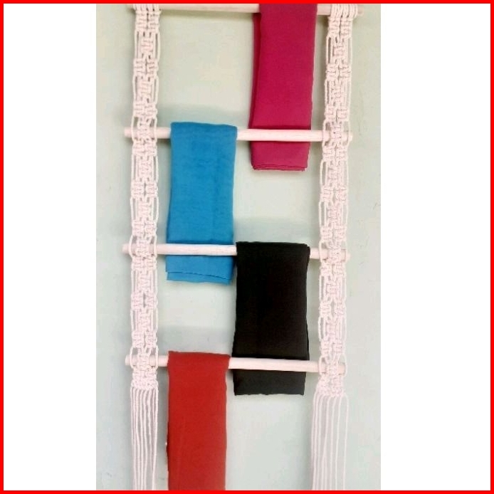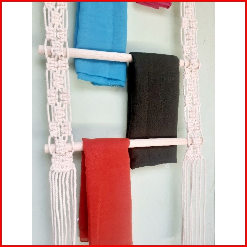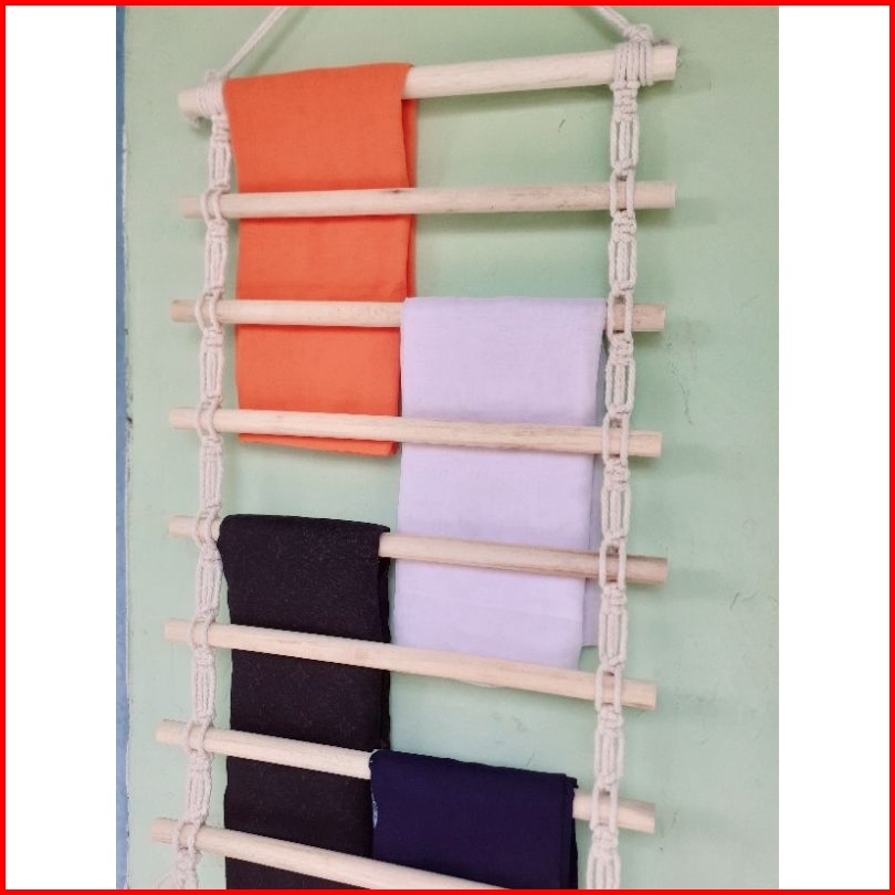 Ladder Hanger 8 Susun 6 Susun 4 Susun 2 Susun Anyaman Tali Macrame Kayu Dowel Bulat Panjang Gantungan Baju Hijab Mukena