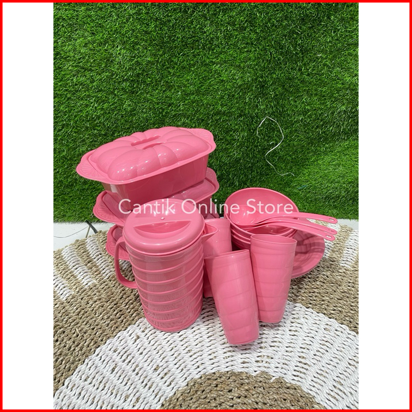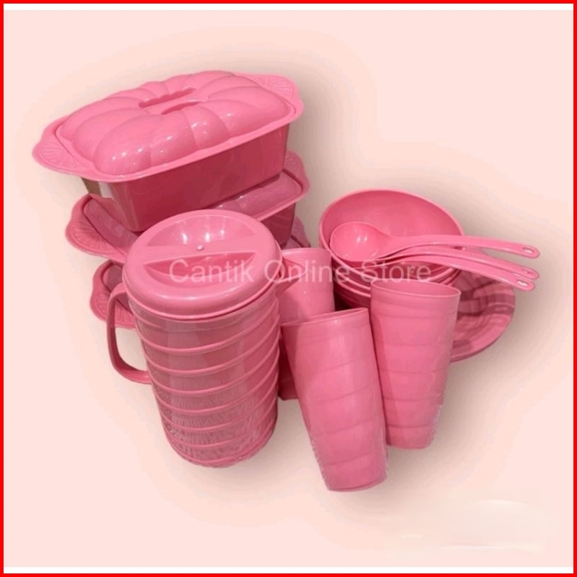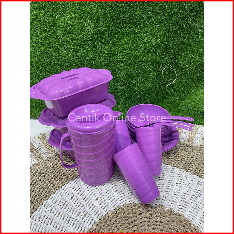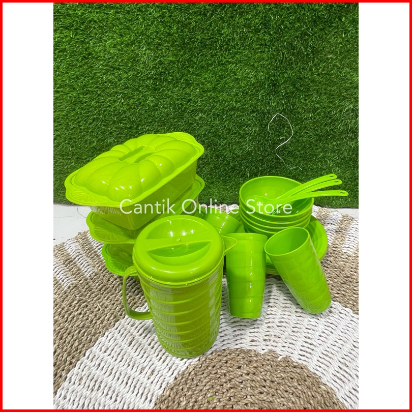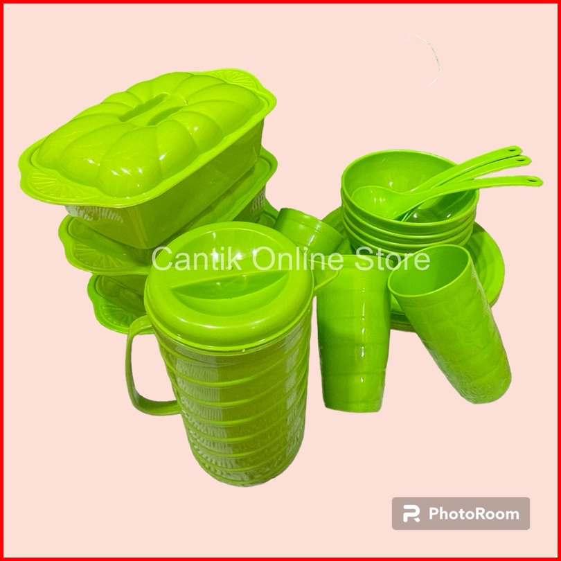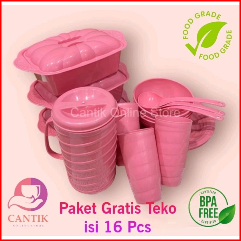 Prasmanan Set Isi 16 Pcs 3 Basi Segi 3 Piring 3 Mangkok 3 Gelas Ulir Teko Ulir Free 3 Pcs Centong Sayur