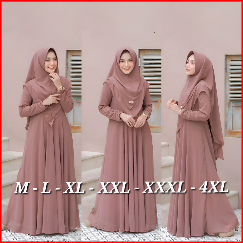 Gamis Syari Jumbo Jilbab 2 Layer Ukuran M L Xl Xxl Xxxl Set Murah Busui Polos Dress Pesta Terbaru Berkualitas Premium Pl