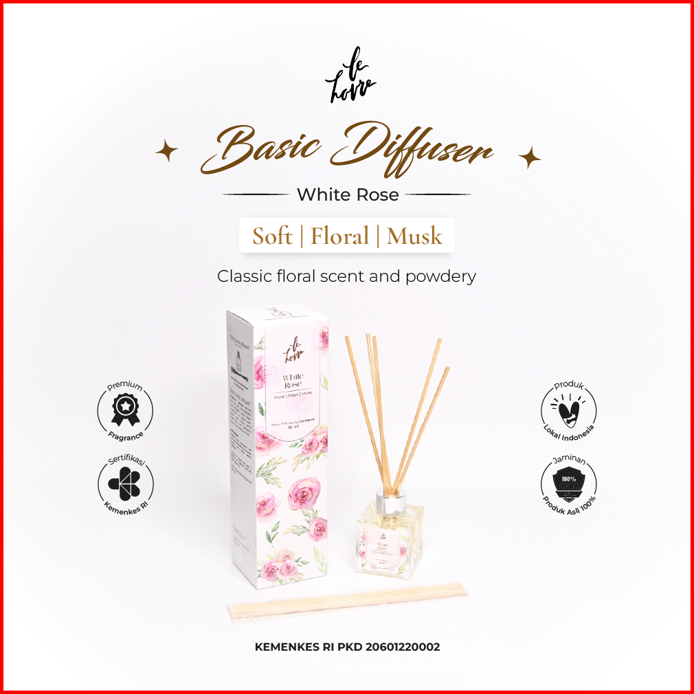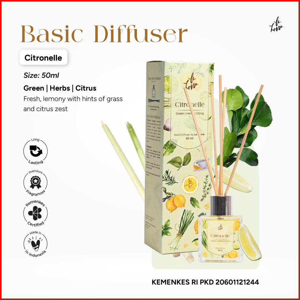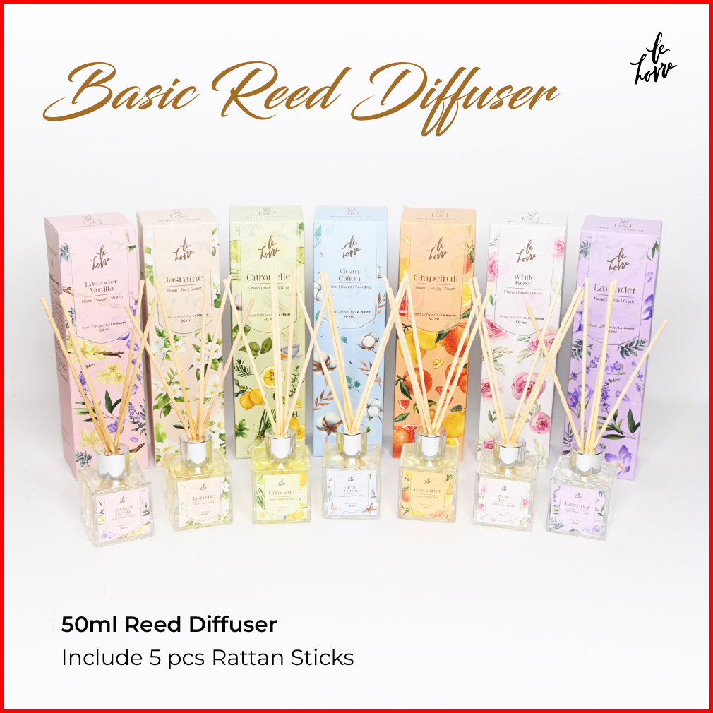 Le Havre - Basic Reed Diffuser 50ml - Pengharum Ruangan Kamar Mandi Tahan Lama