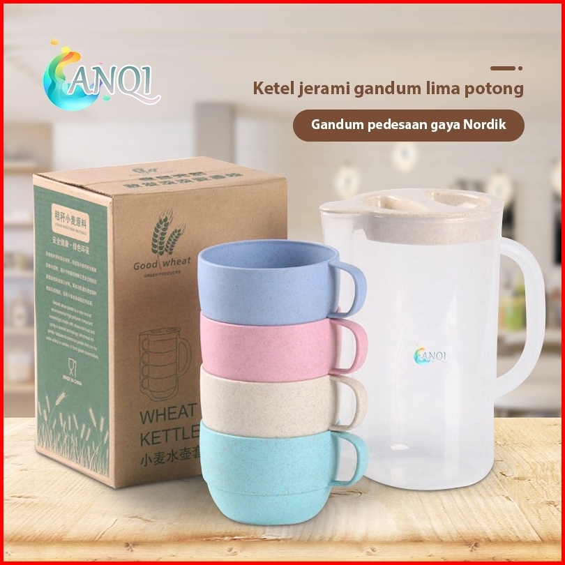 Anqi Teko Jus Air Teh Kopi Wadah Plastik Dengan 4 Cangkir Vs-16