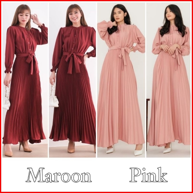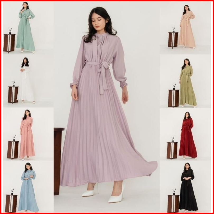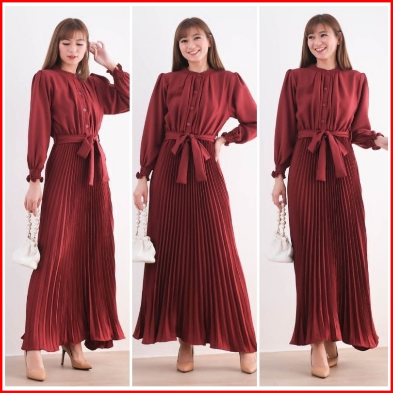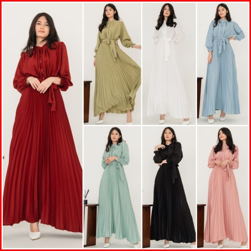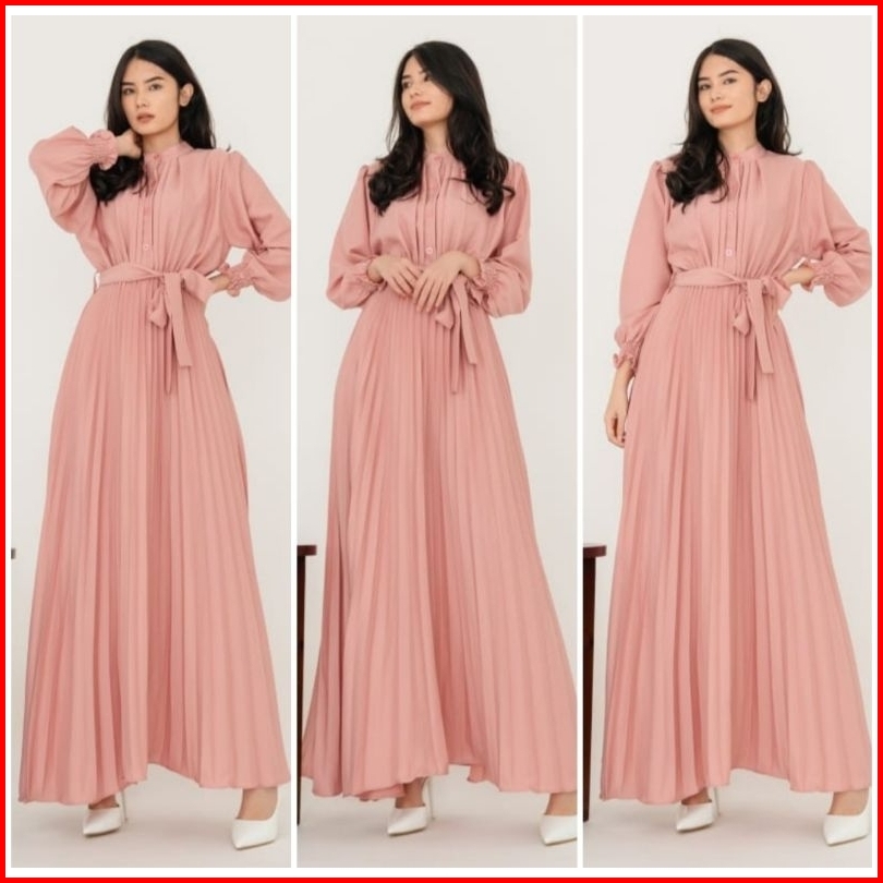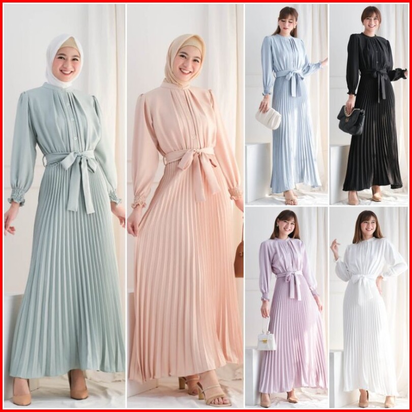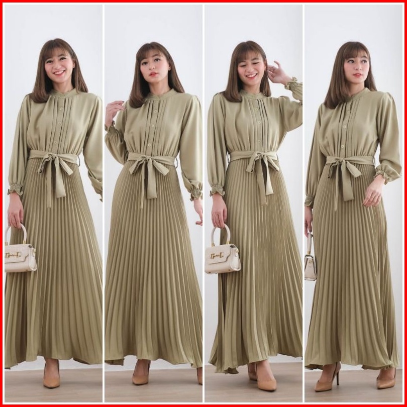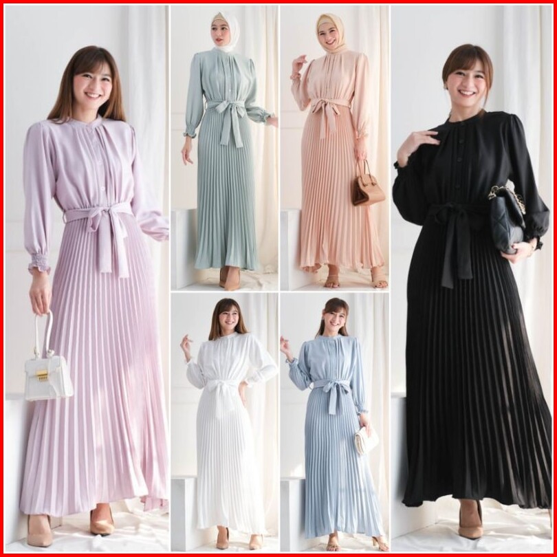Sale Termurah Best Seller Premium Gamis Gabrielle Mosscrepe Maxi Dress Button Long Sleeve Obi Plisket Maxi Hijab Dress B