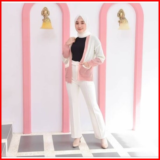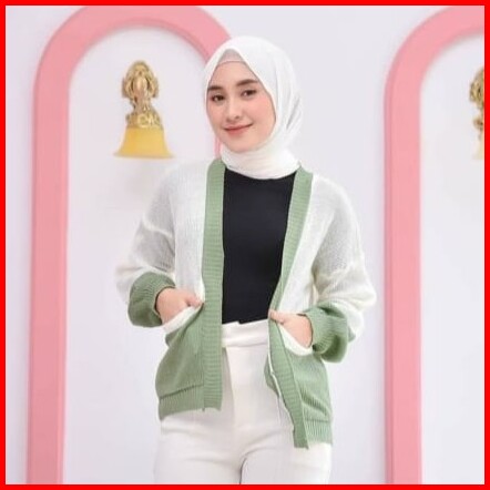 Marlina Cardigan Rajut L Cardy 2 Tone L Raat Kombinasi Pakaian Rajut Wanita L Outerwear Wanita
