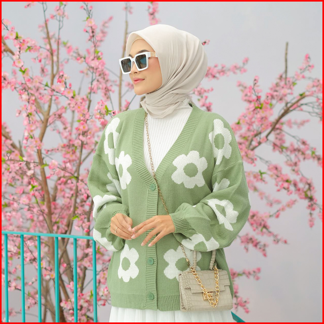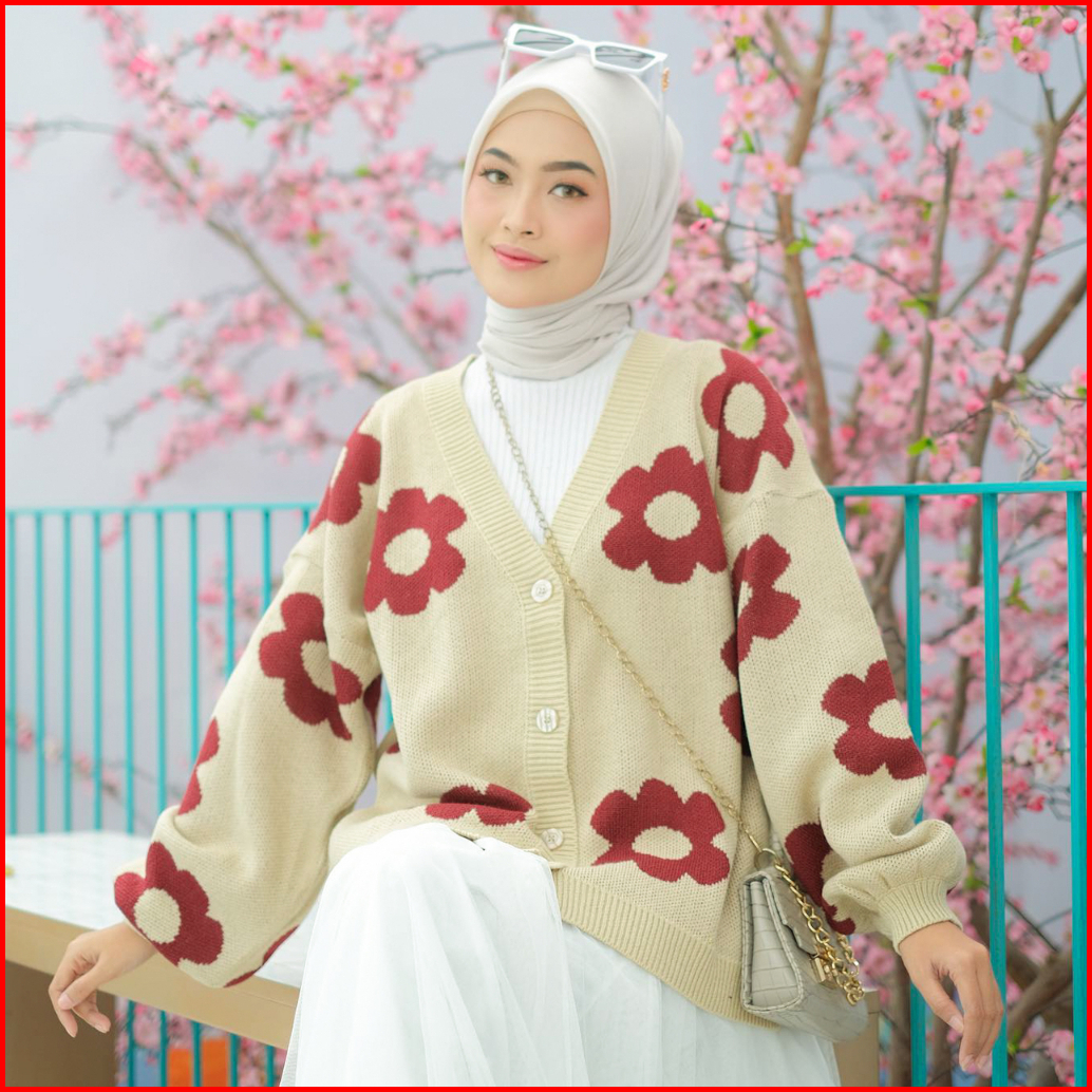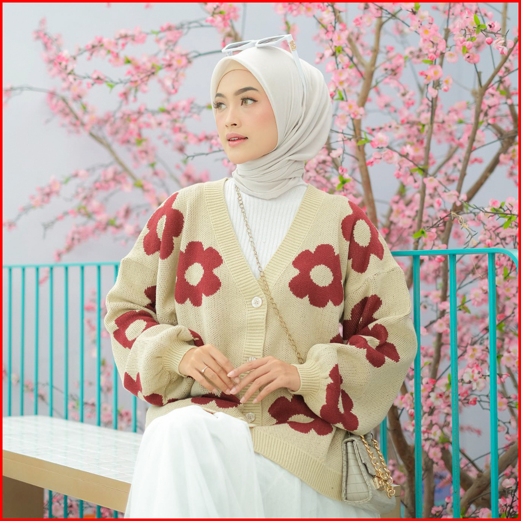 Fafour Alma Cardigan Rajut Wanita Bunga Flowers Oversize Knitwear