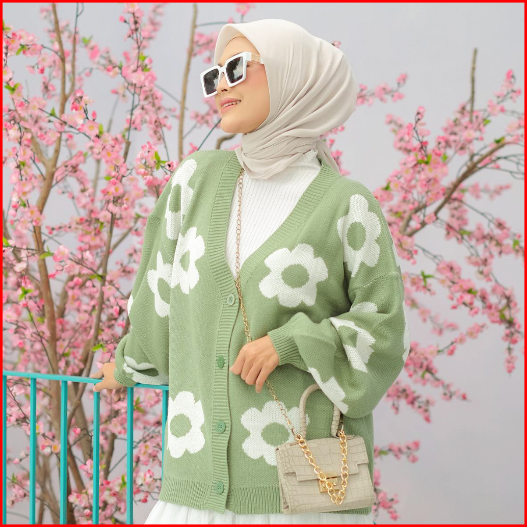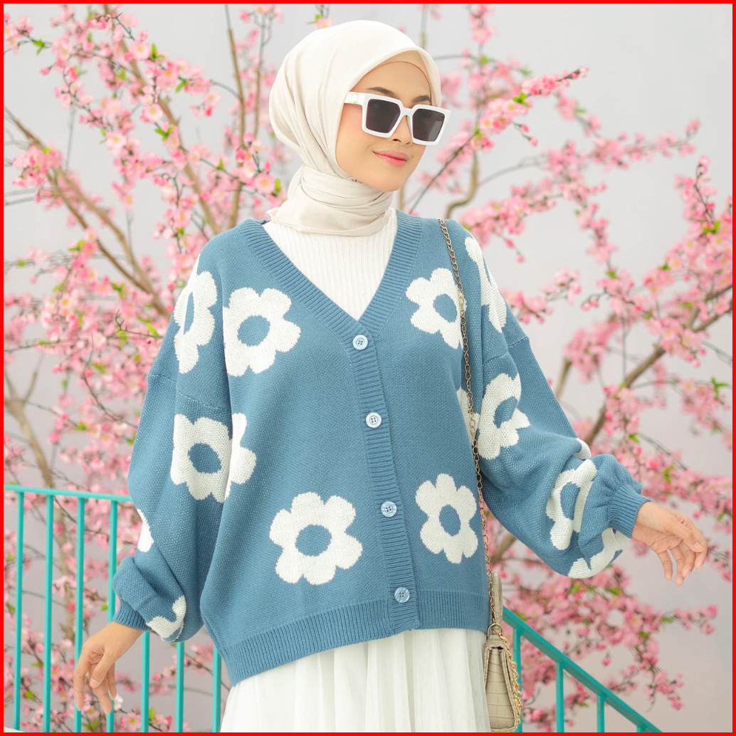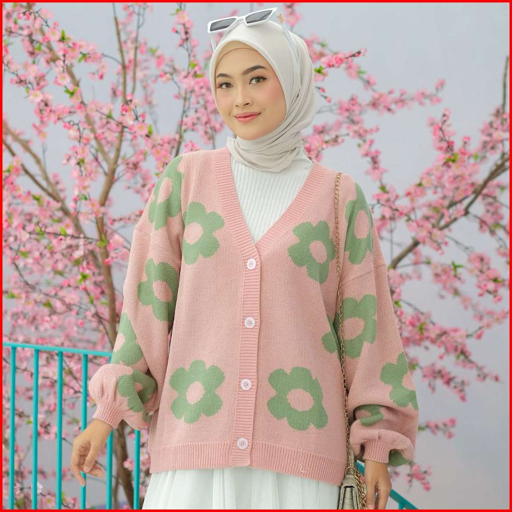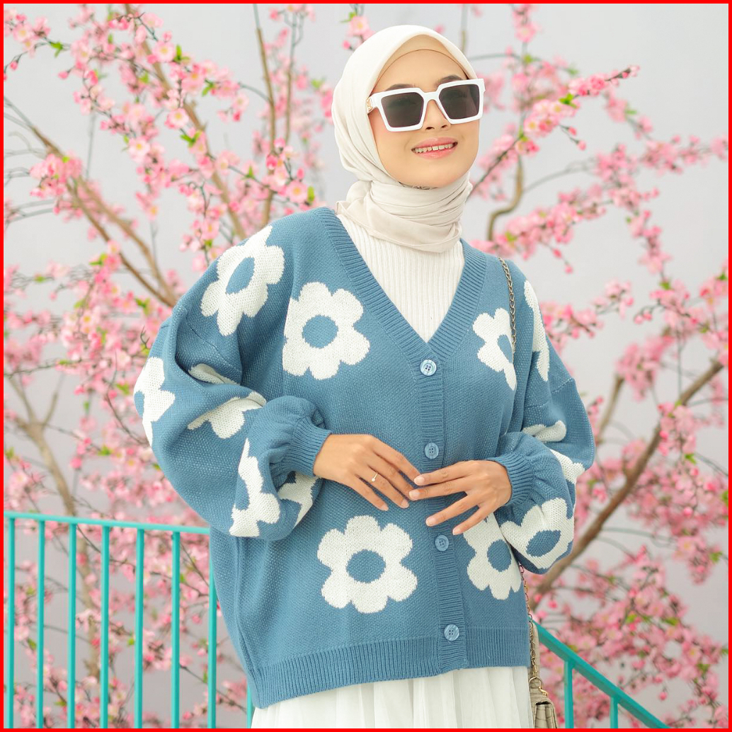 Fafour Alma Cardigan Rajut Wanita Bunga Flowers Oversize Knitwear