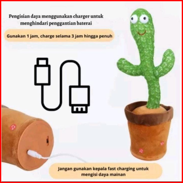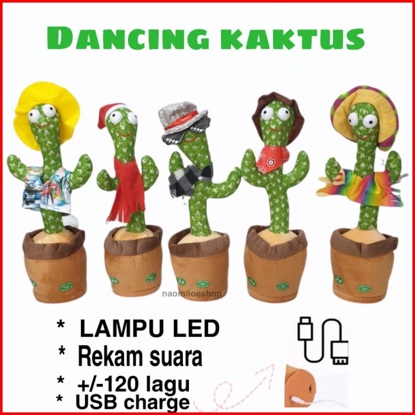 Mainan Boneka Kaktus Elektrik Lampu Led Mainan Kaktus Dancing Cactus Toy Joget