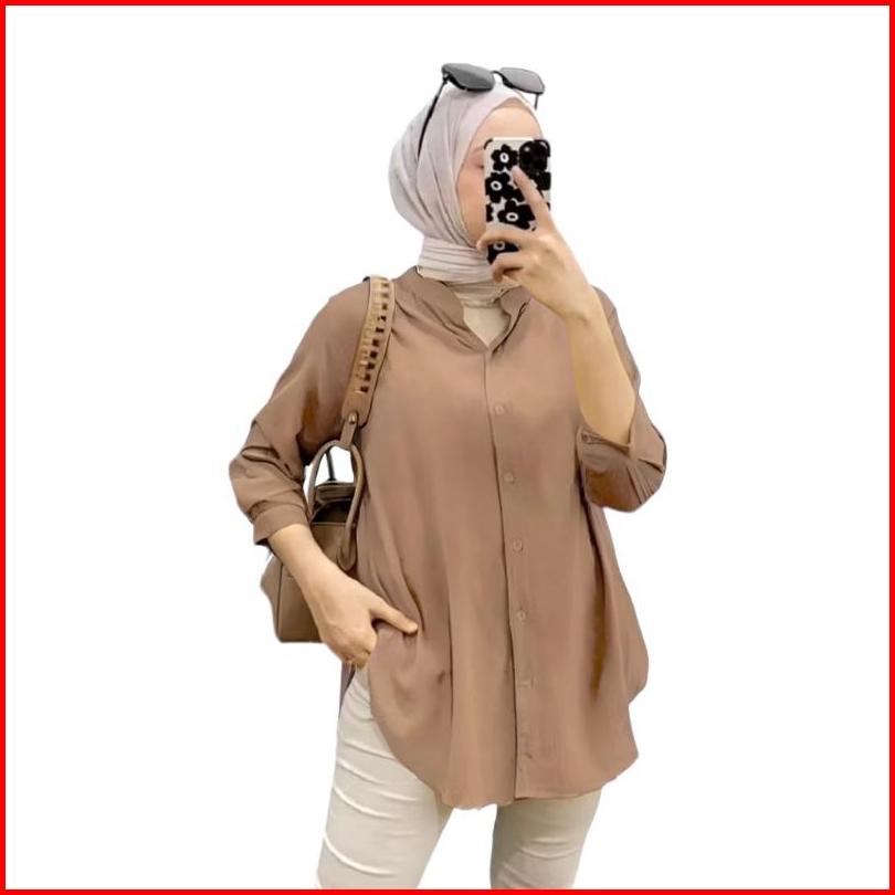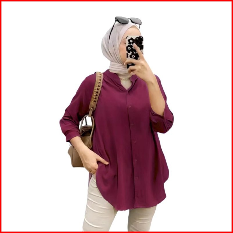 Kemeja Rayon Twill-kemeja Blouse Oversize Shirt Polos Kemeja Lengan 7 8 Wanita Over Size Kemeja Viral Bahan Rayon Twill